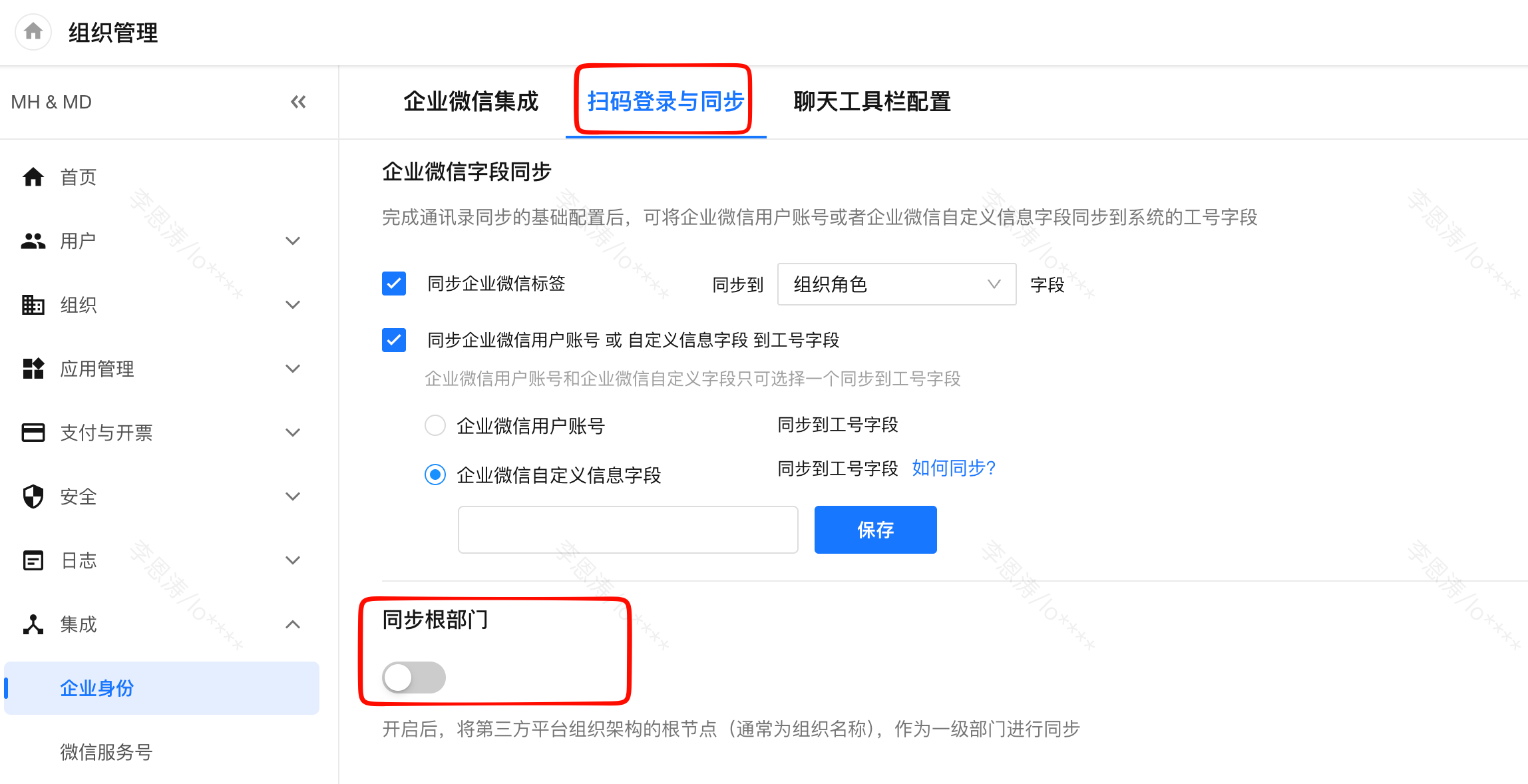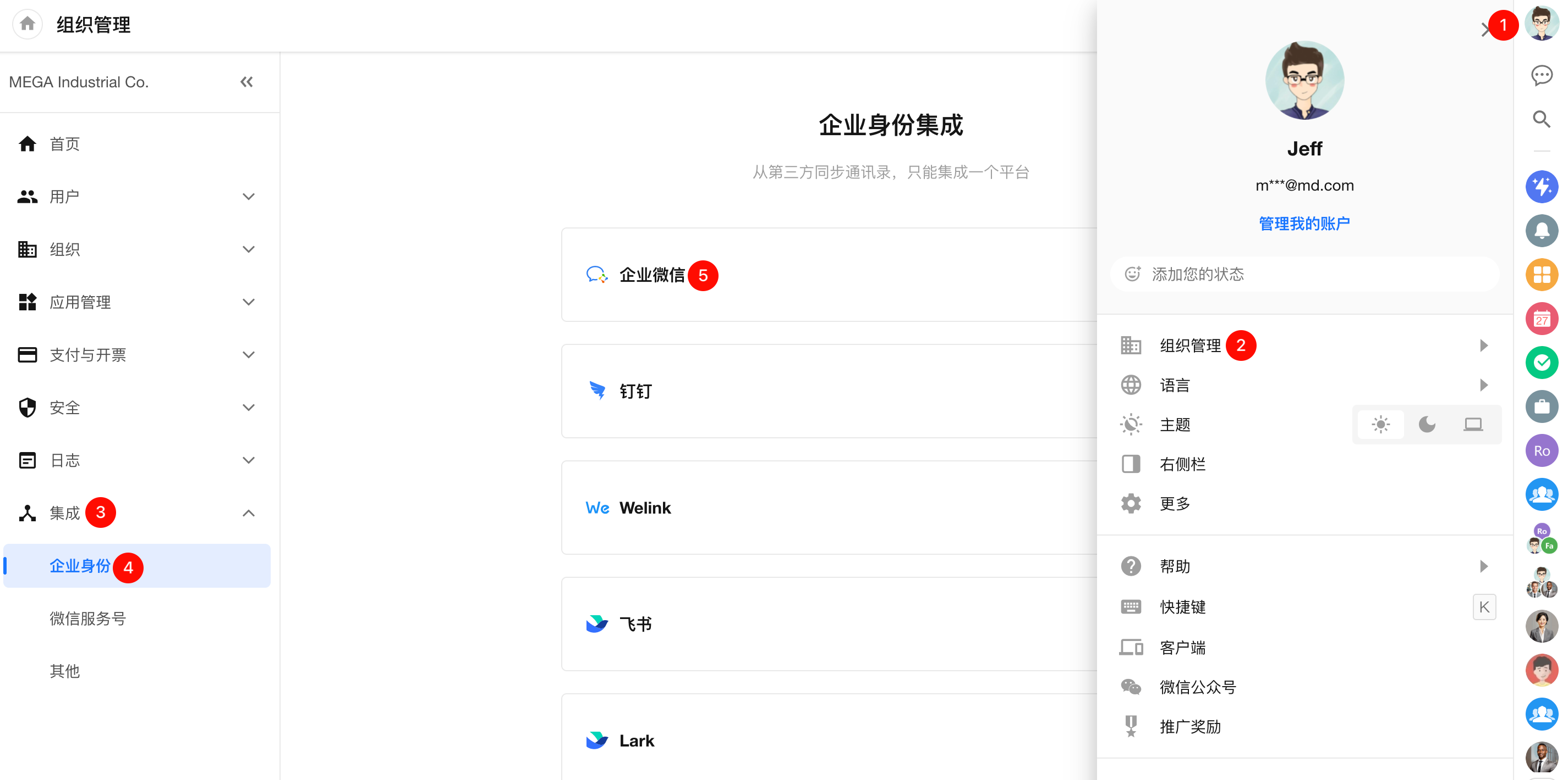 HAP 管理员点击【个人头像】 > 【组织管理】 > 【集成】 > 【企业身份】,选择企业微信。