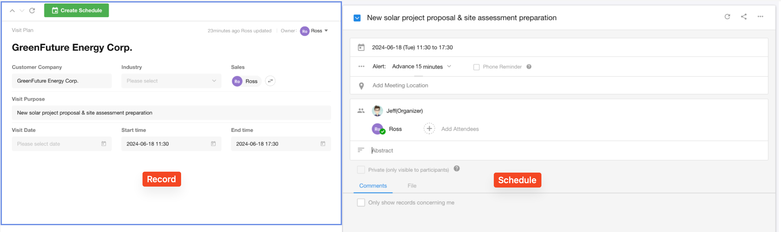 In the Visit Plan worksheet, when a visit plan is created, a schedule is automatically generated.