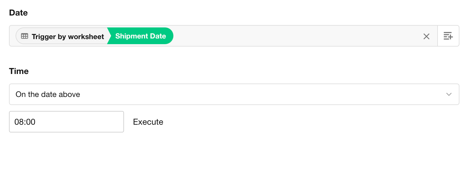 If selected date field is in a date/time format, execution time inherits from time part (no separate time setting required).