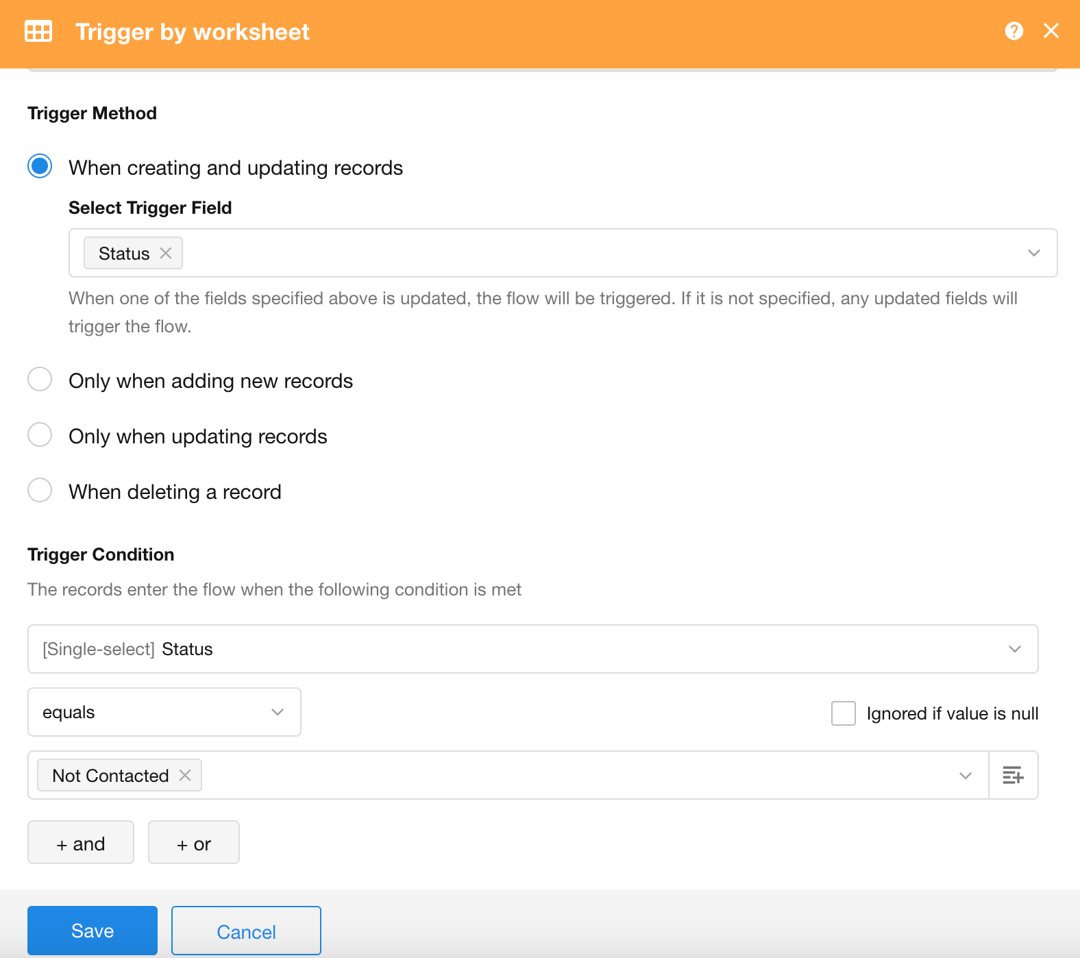 The workflow is triggered when the status of the lead record is changed to "Not Contacted."