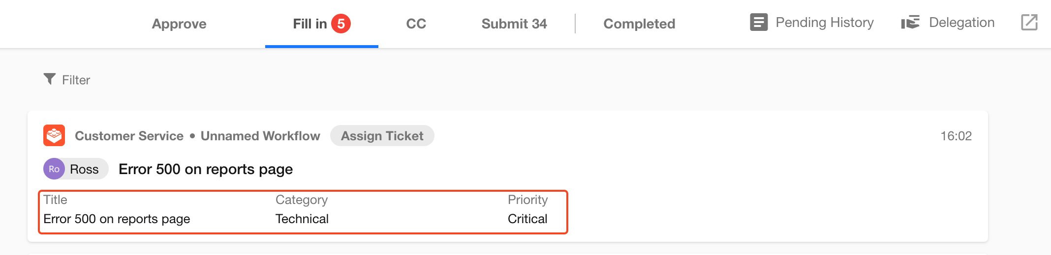 The selected summary fields will appear in the workflow to-do list, allowing users to preview key information quickly.