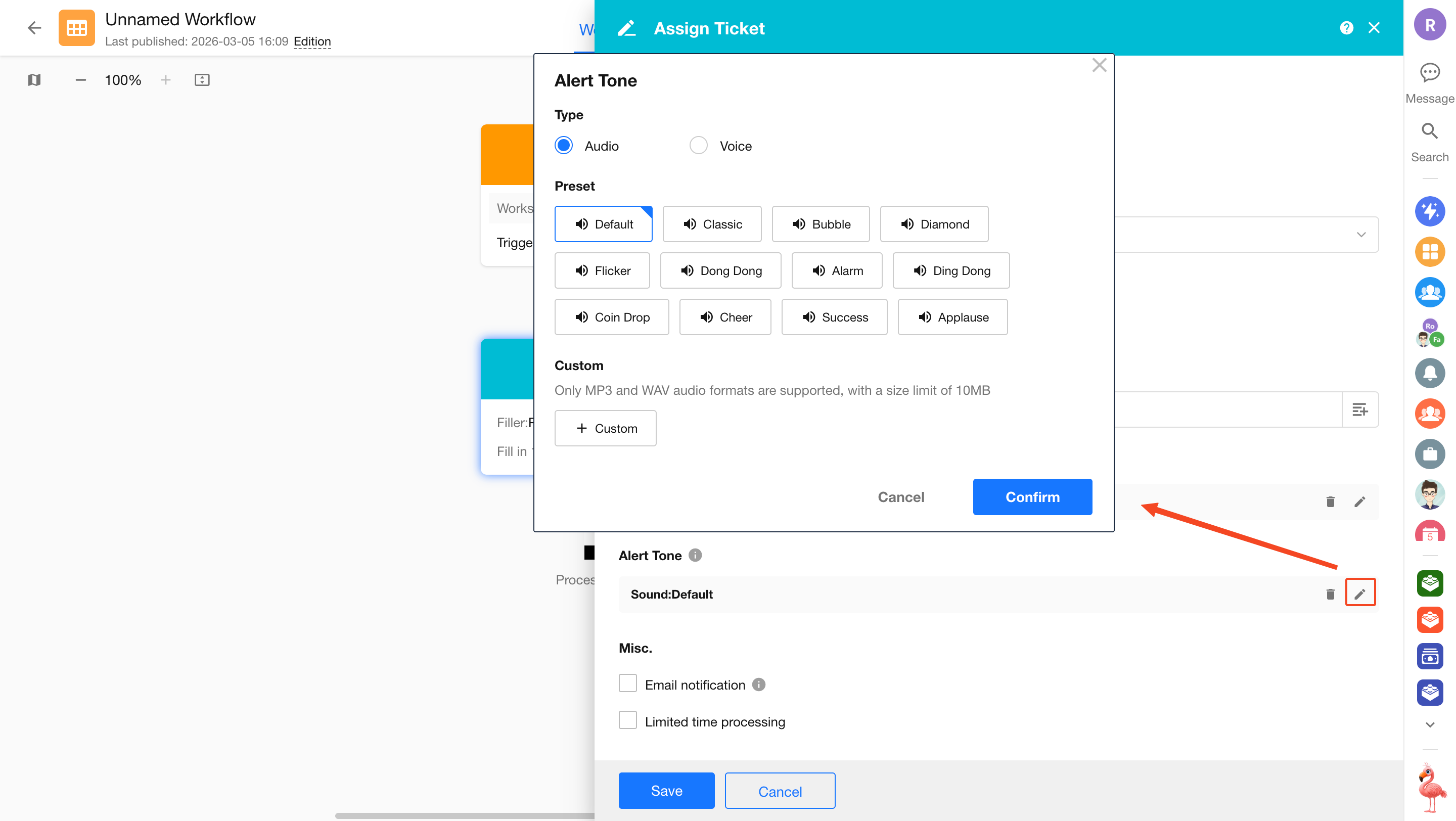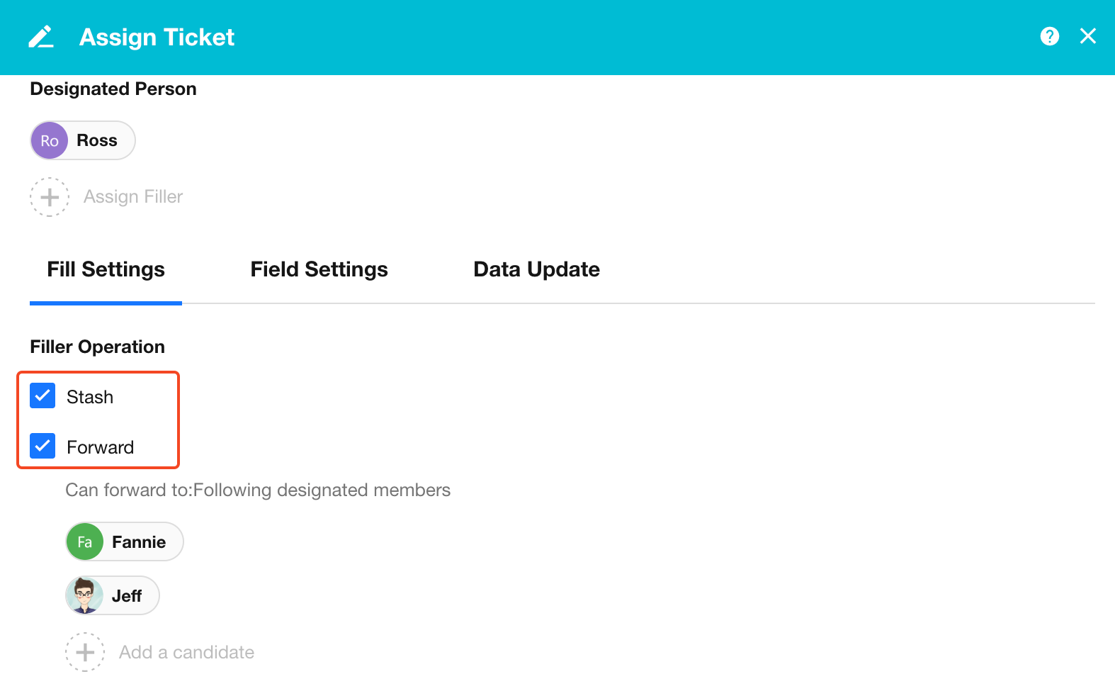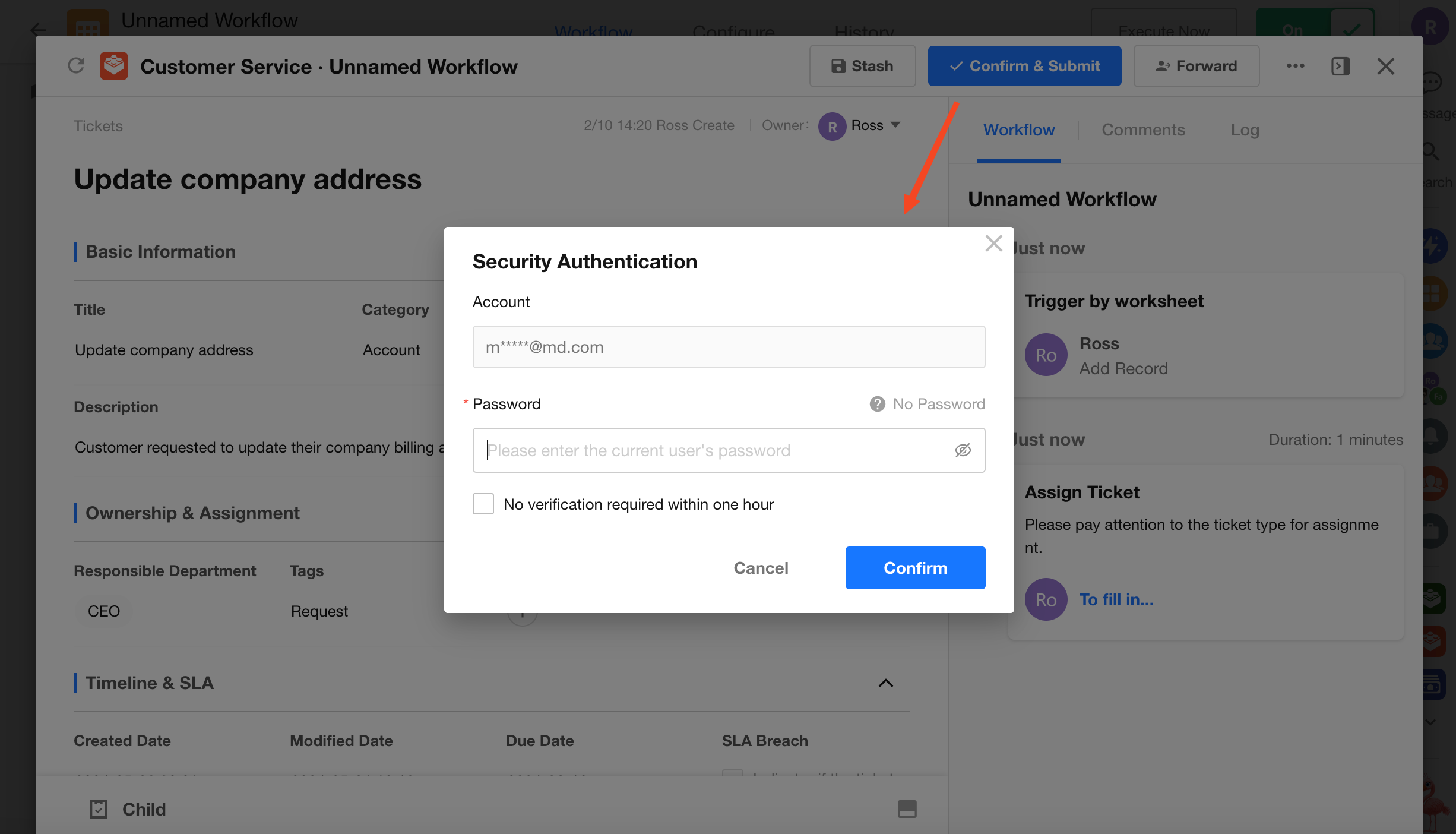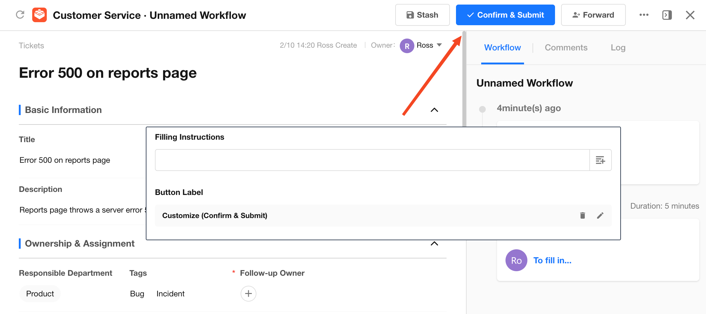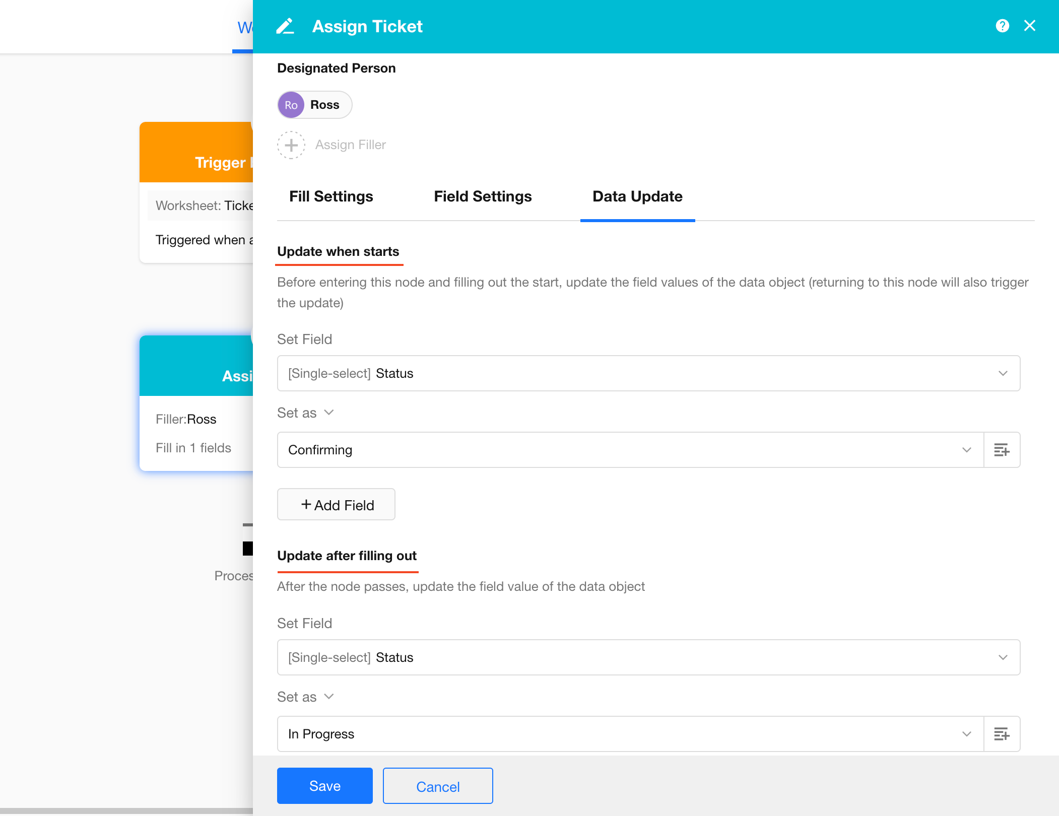 When entering the Fill-in node, automatically change the ticket record status to “Confirming”.