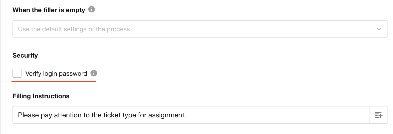 When enabled, the fill-in user must verify their login password before submitting the form.