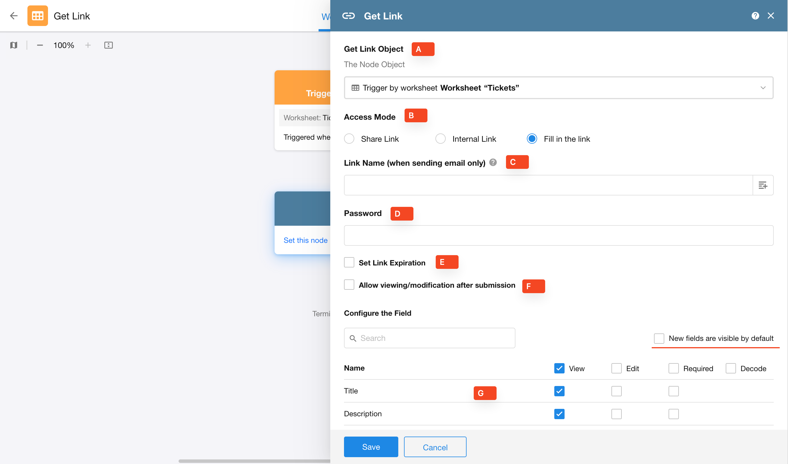 Node Function: This node allows you to generate either an internal link or a public link to a record. Public links let users view or even edit specified fields without logging in. Internal links require the user to log in and have permission to view or edit the record.