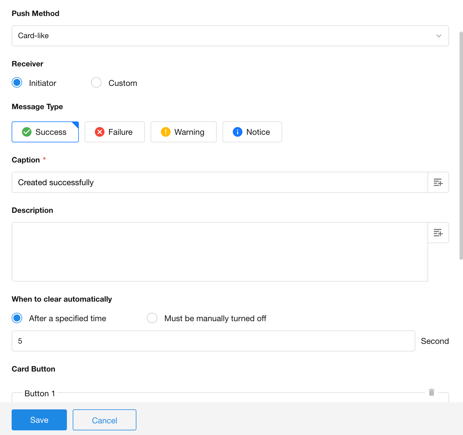 Example 3: After creating a record, instead of automatically opening it, show a "successful creation" prompt. Users can click a button to view record details if needed.