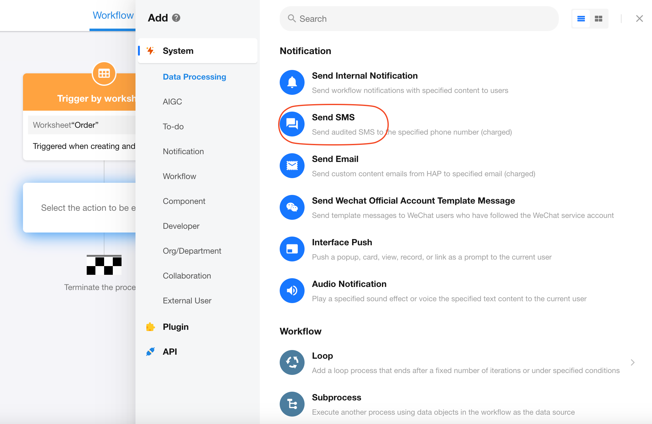 Add a Send SMS node