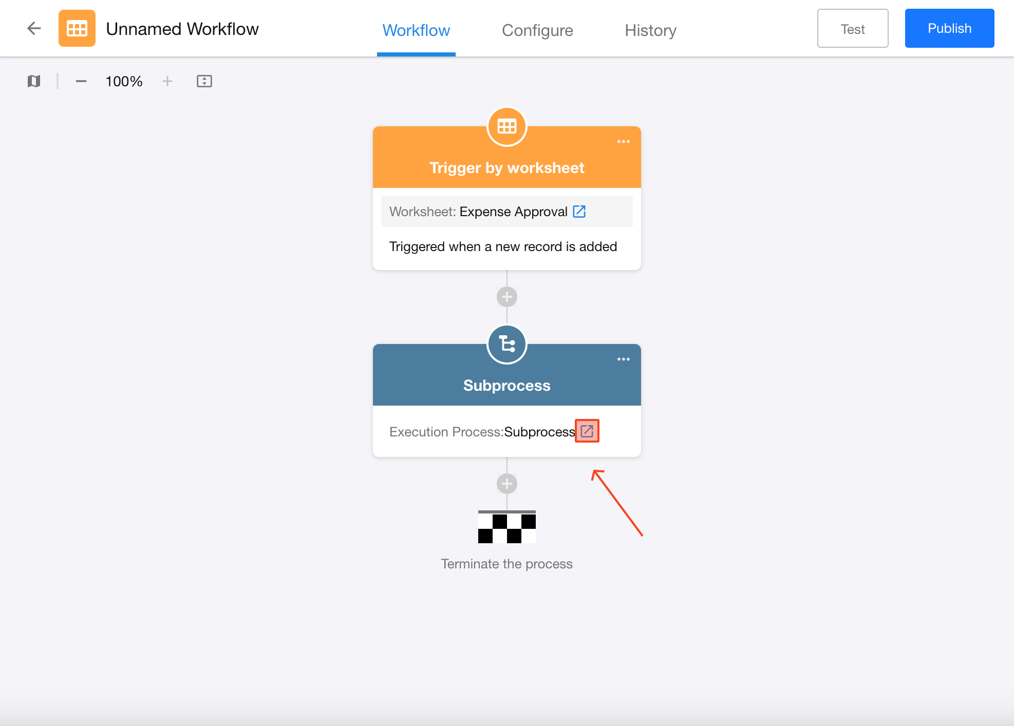 Design your approval logic within the subprocess. Once configured, publish the workflow.