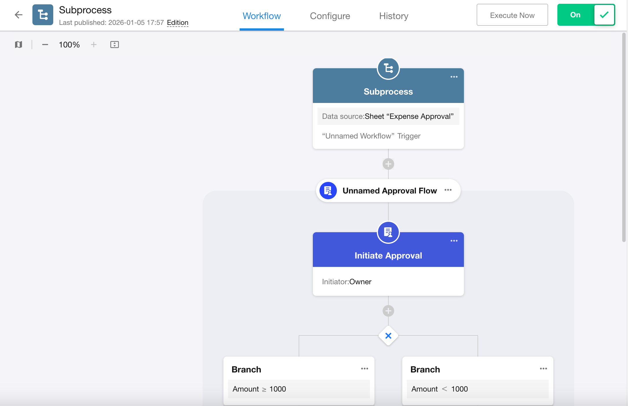 For example, in an expense approval scenario, the approval process may be triggered either when a new record is created or when a user manually clicks a button after saving a draft. Although the triggering methods differ, the approval flow remains the same. By placing the approval logic in a subprocess, you can invoke it uniformly from both entry points—ensuring consistency and simplifying maintenance.