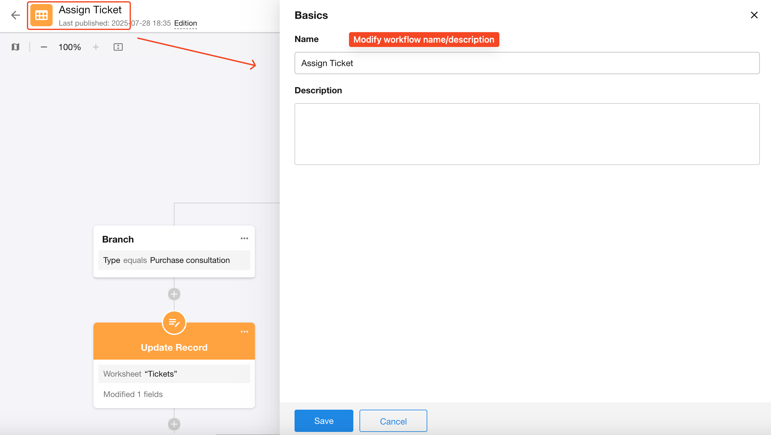 After completing modifications, be sure to click "Publish updates" to apply the new changes to the workflow.