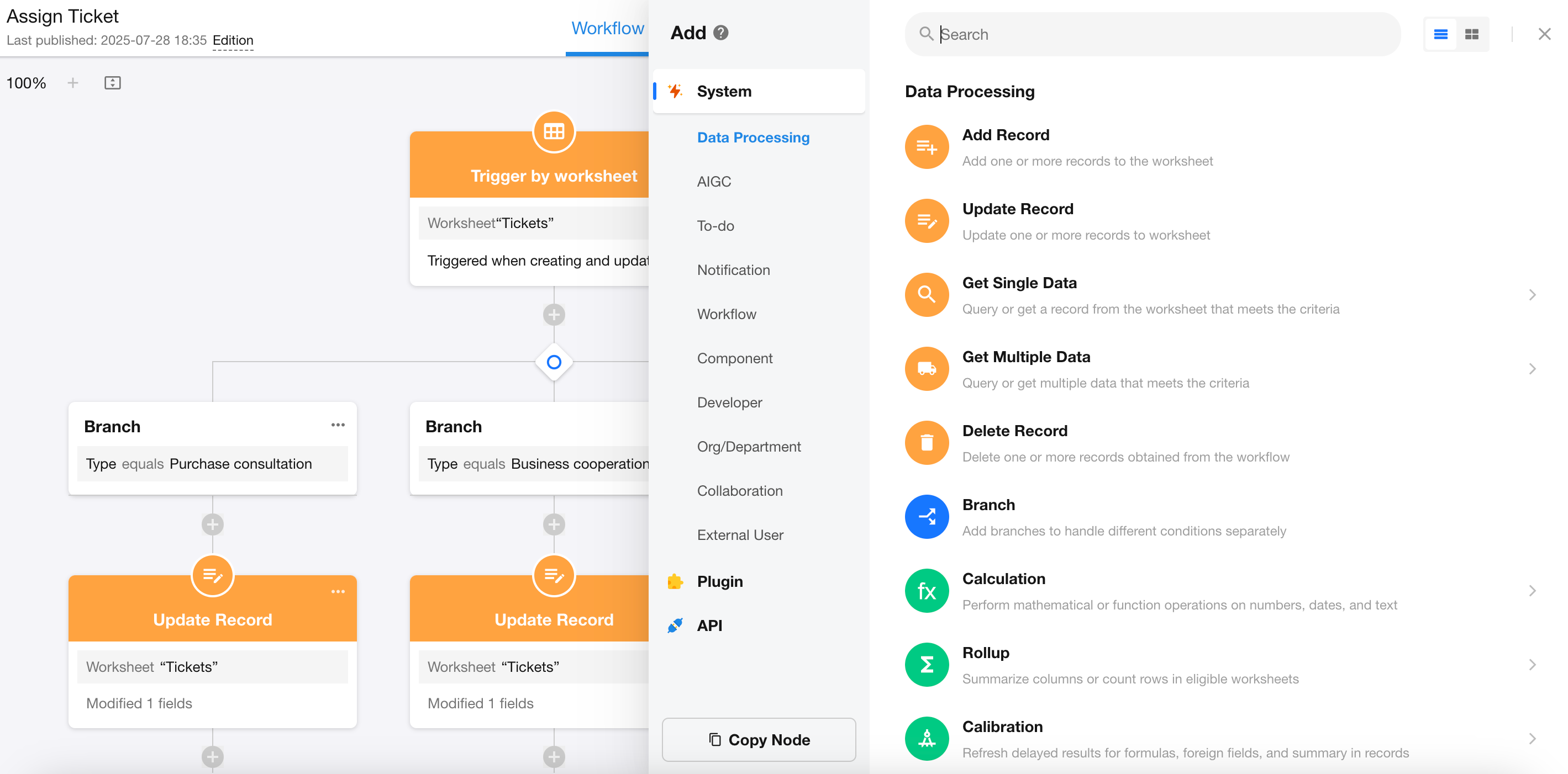 Note: If a record filter is configured in the trigger node, the selected record must meet the trigger conditions to execute the workflow.