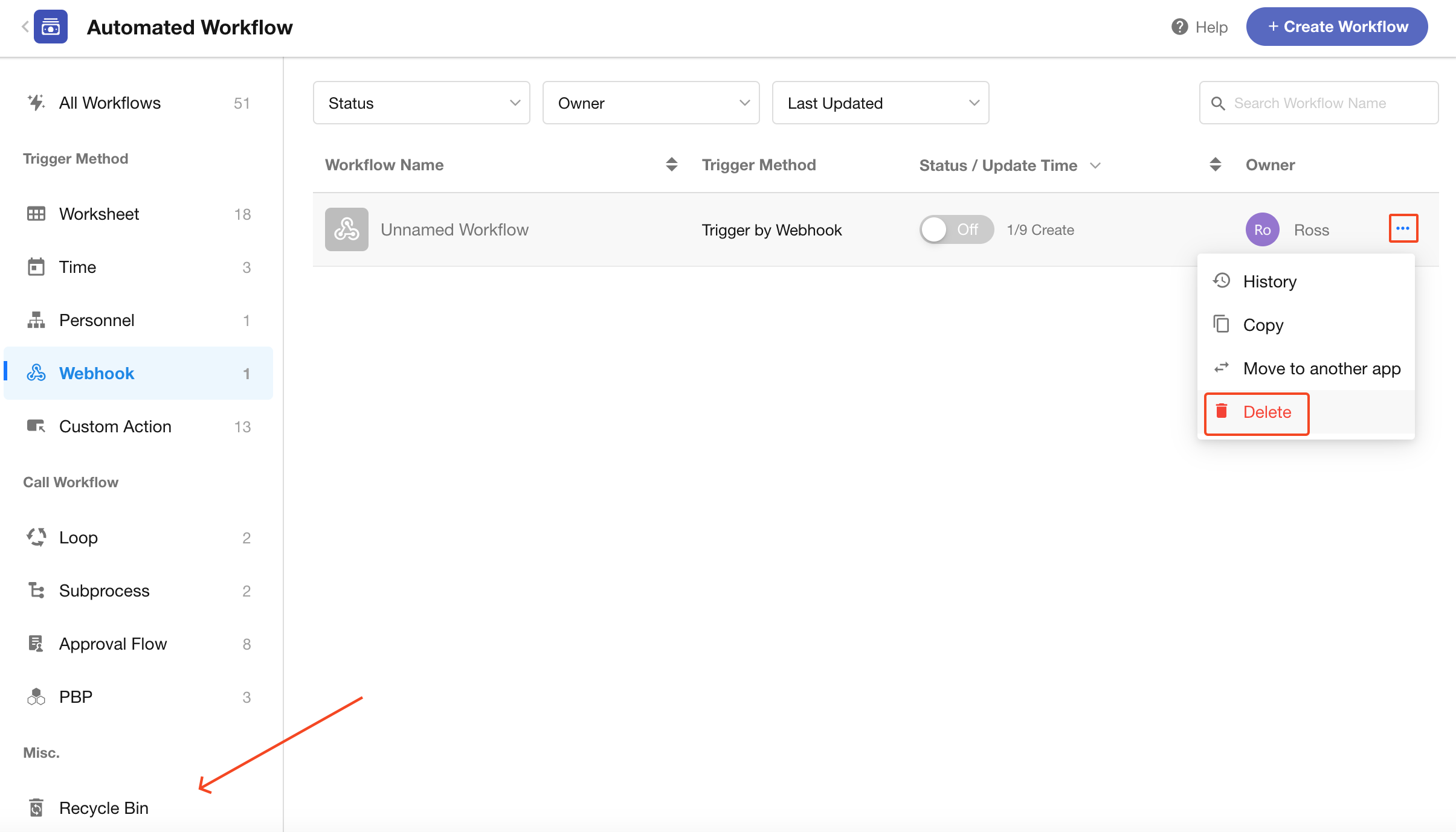 Deprecated workflows can be deleted, after which they will enter the recycle bin. If you need to restore them, simply go to the recycle bin and restore them.