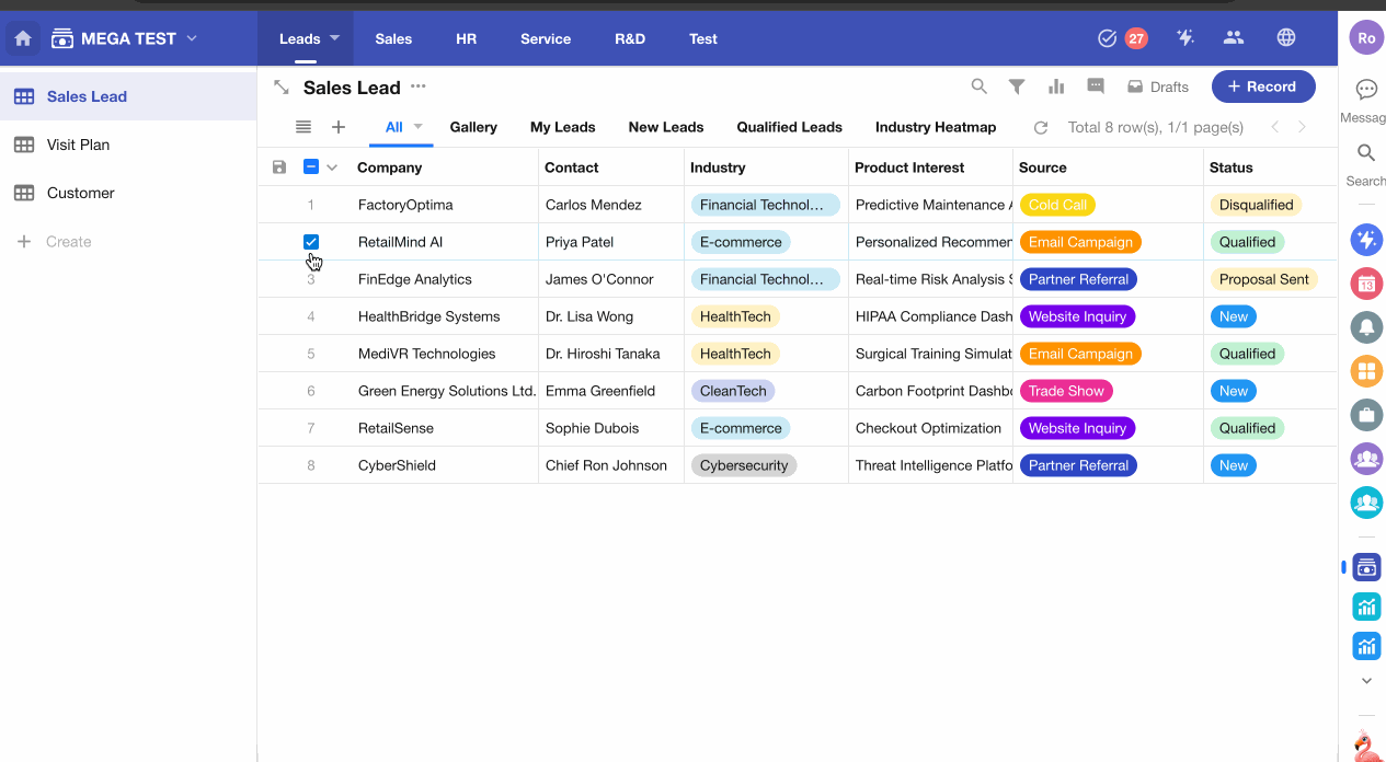 Print a QR code or barcode for each record. Scanning the code opens the record detail page on mobile. Learn more