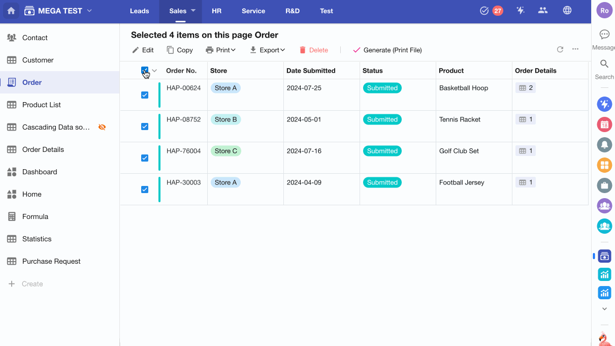 Only records printed using Word/Excel templates or record QR/barcodes support batch printing. System print templates do not support batch printing.