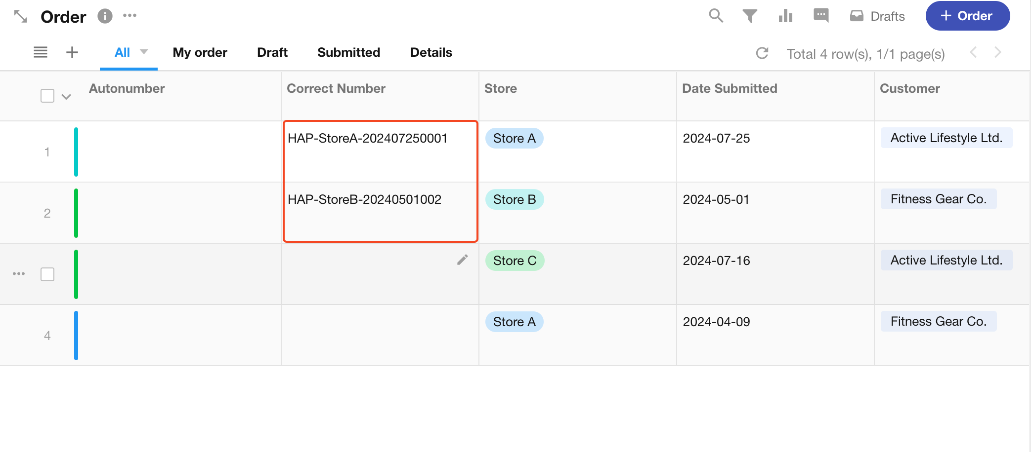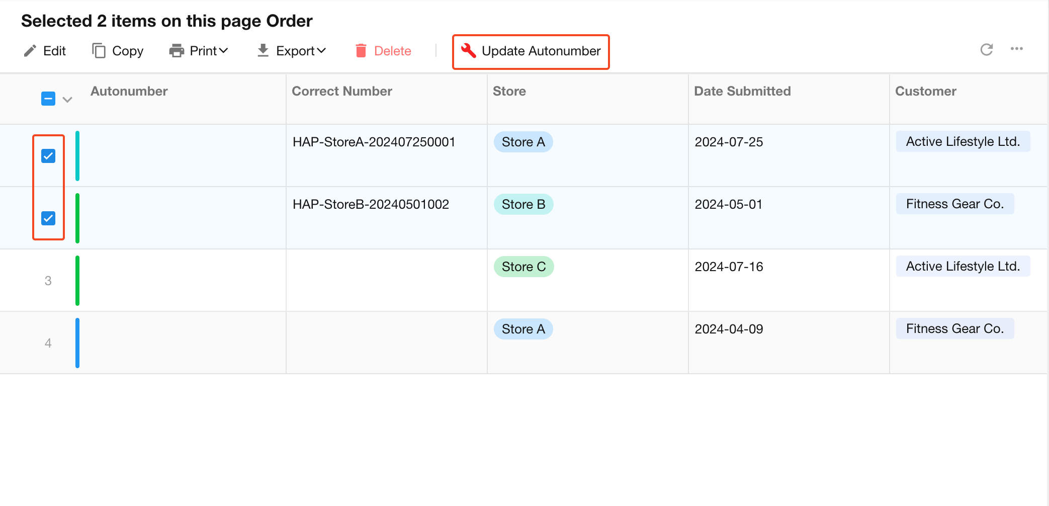 As mentioned earlier, modifying numbering rules does not automatically update existing records. To update them, you can use either of the following methods: