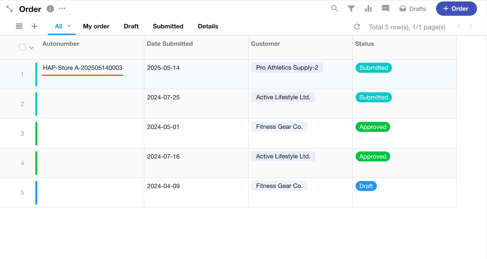 For example, if a worksheet already contains 5 records when a new autonumber control is added, the autonumber field for these existing records will be empty. You can update them using the methods described earlier to assign numbers 1, 2, 3, 4, and 5. However, when adding a new record afterward, you might expect it to be numbered 6, but it will actually display 1.