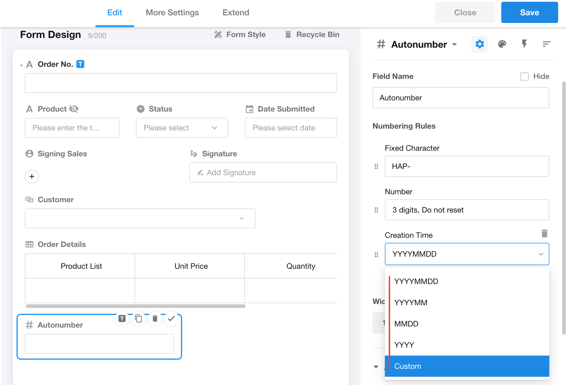Sometimes, numbering needs to reflect the record's creation time. For time display, users can choose from preset time formats or customize their own display rules.