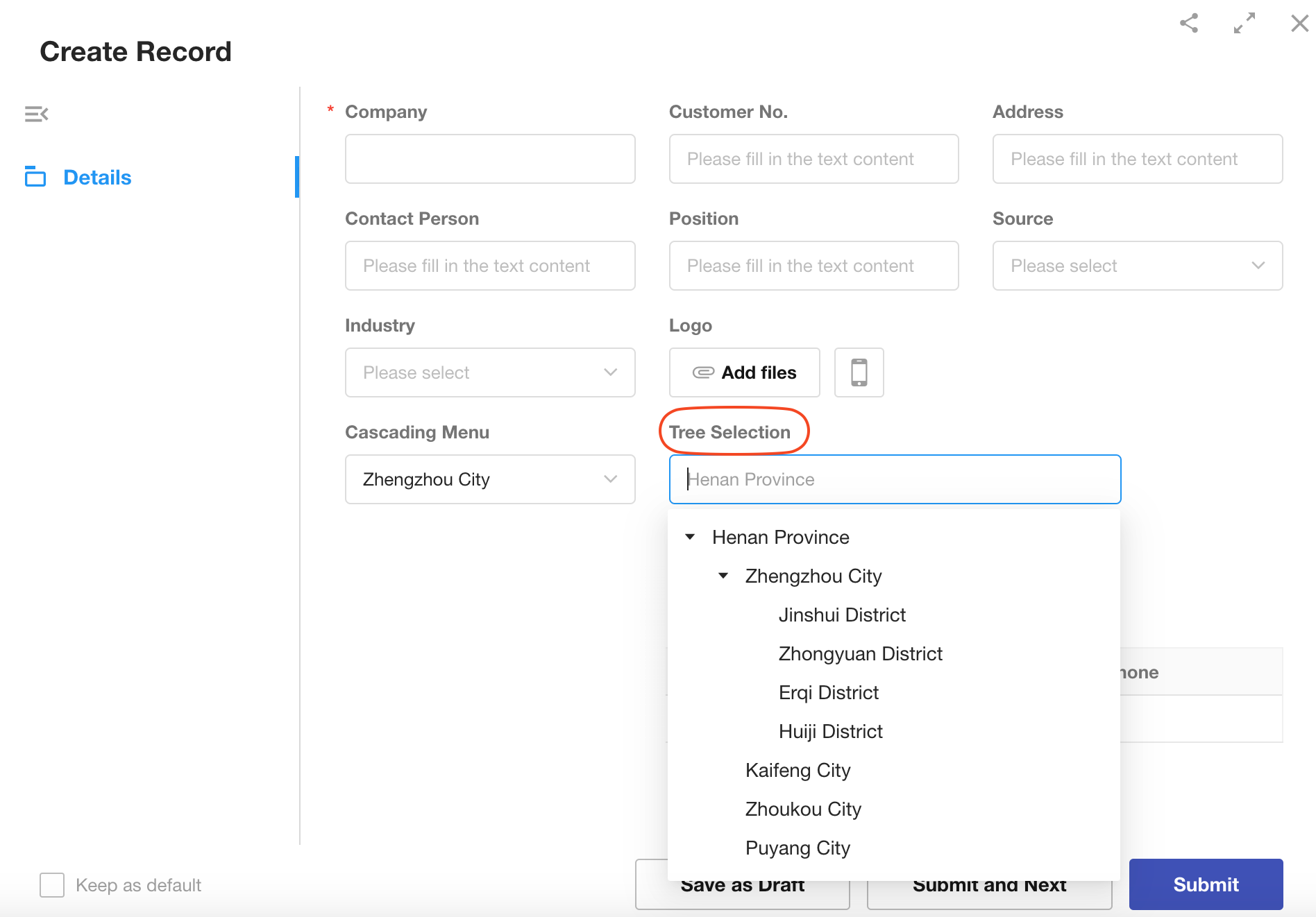 When "Mandatory full-level selection" is enabled, the selected item must reach the end of the selection chain to be successfully saved. For example, if you select a region as "Henan Province - Zhengzhou City - Jinshui District," this represents a three-level selection chain. With this option enabled, you must select down to the final level (i.e., Jinshui District) to save your choice. If this option is disabled, you may save your selection at just the provincial level or at the provincial/municipal level.