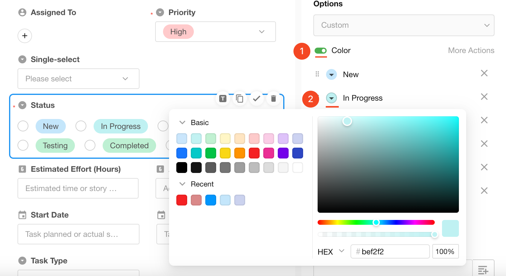 Options support color configuration to help categorize and identify data. You can also enable or disable colors for all options.