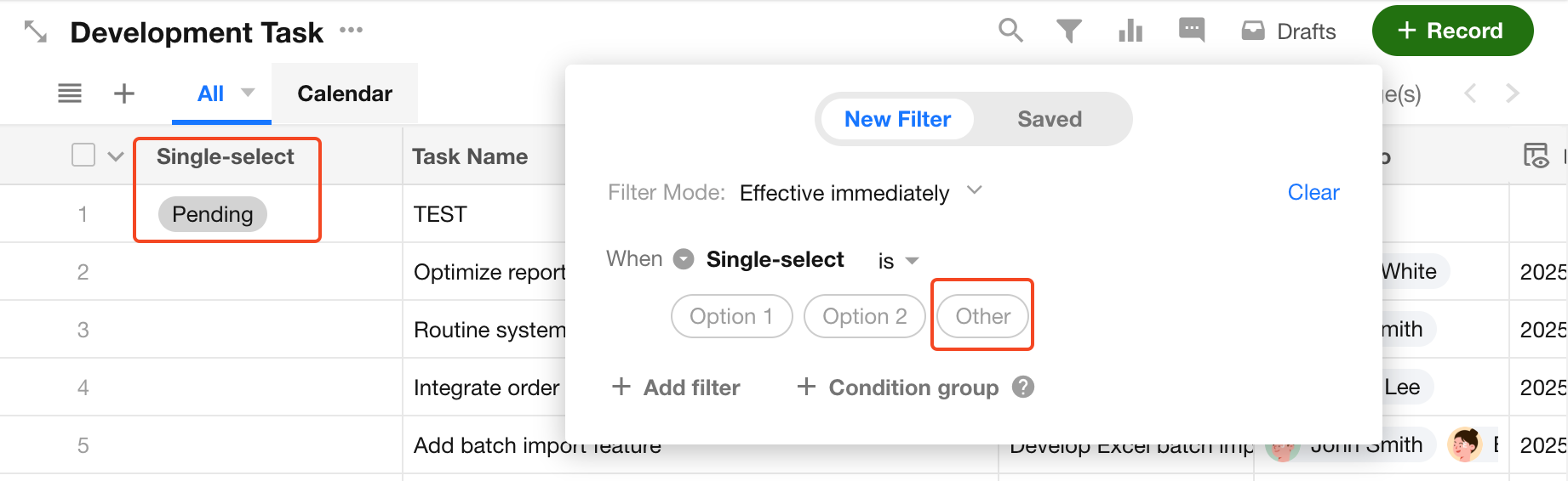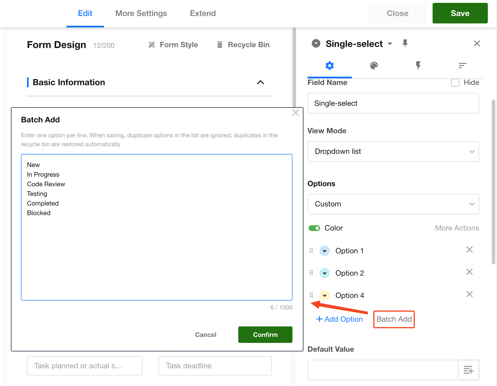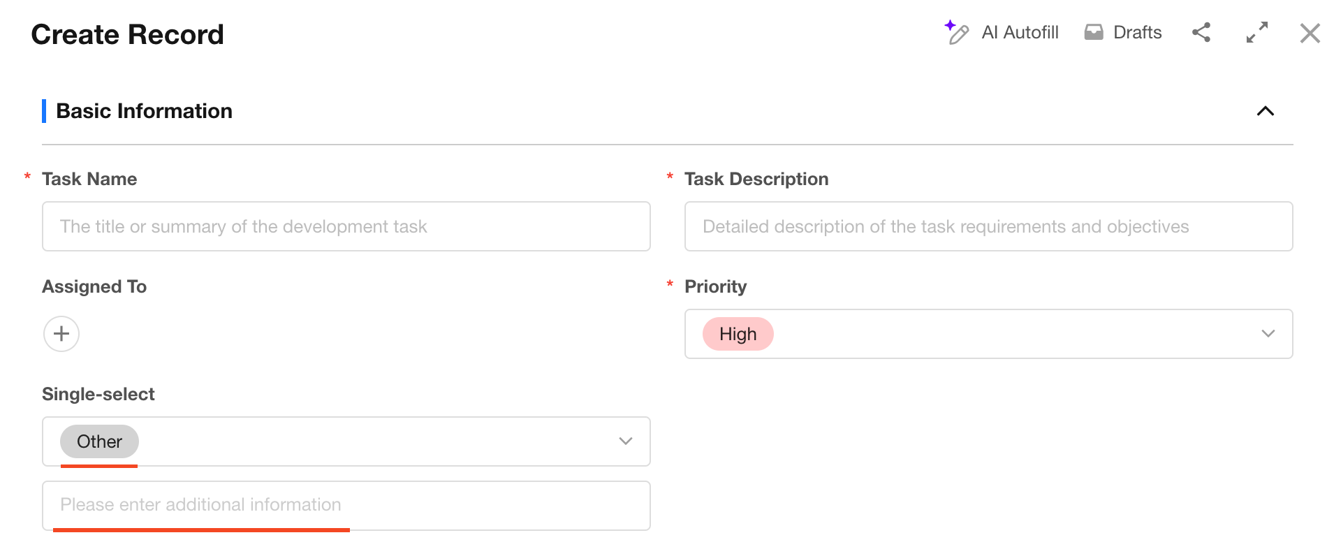In some cases, predefined options may not cover all possibilities. Users can directly enter new values, which will be automatically added to the option list.