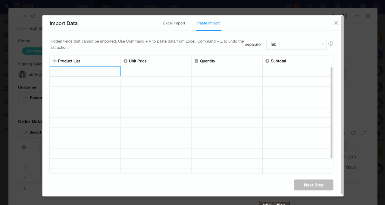 3)The header in the preview area displays field names from the subform, shown in the subform's field order. Fields that cannot accept imported data won't be displayed.
