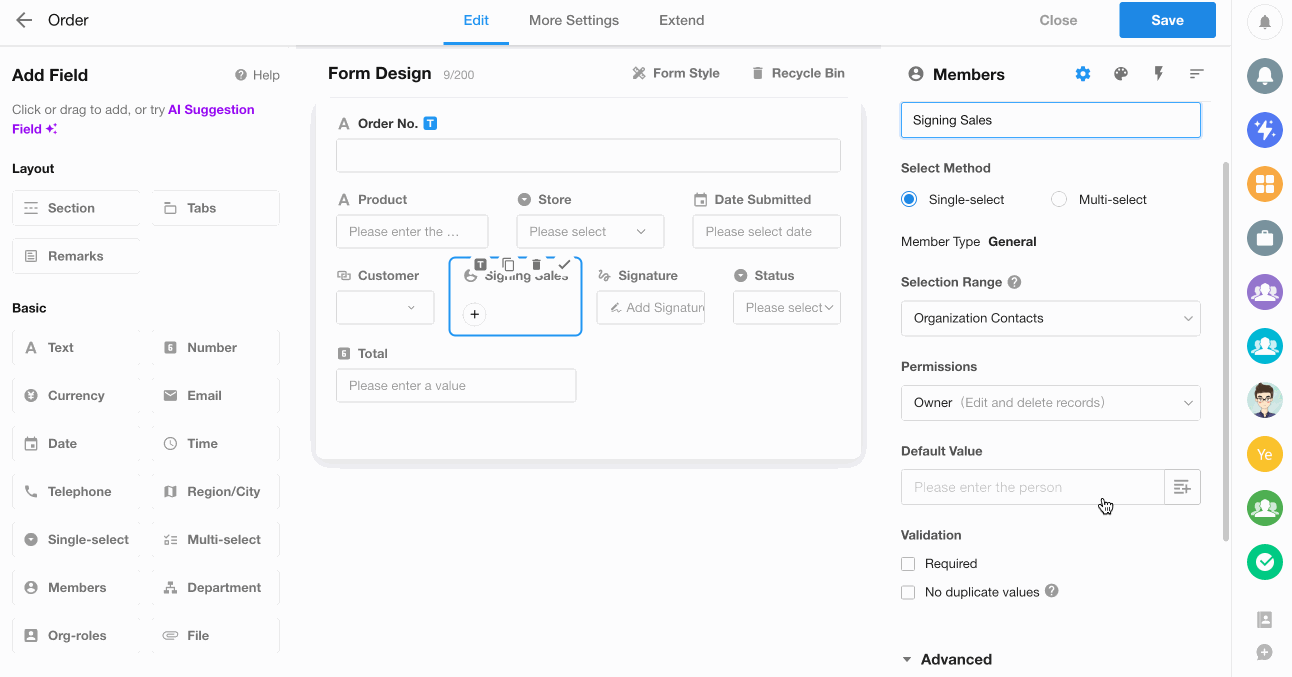 - When selecting a related customer record, the order's assigned salesperson will automatically default to that customer's follow-up salesperson.