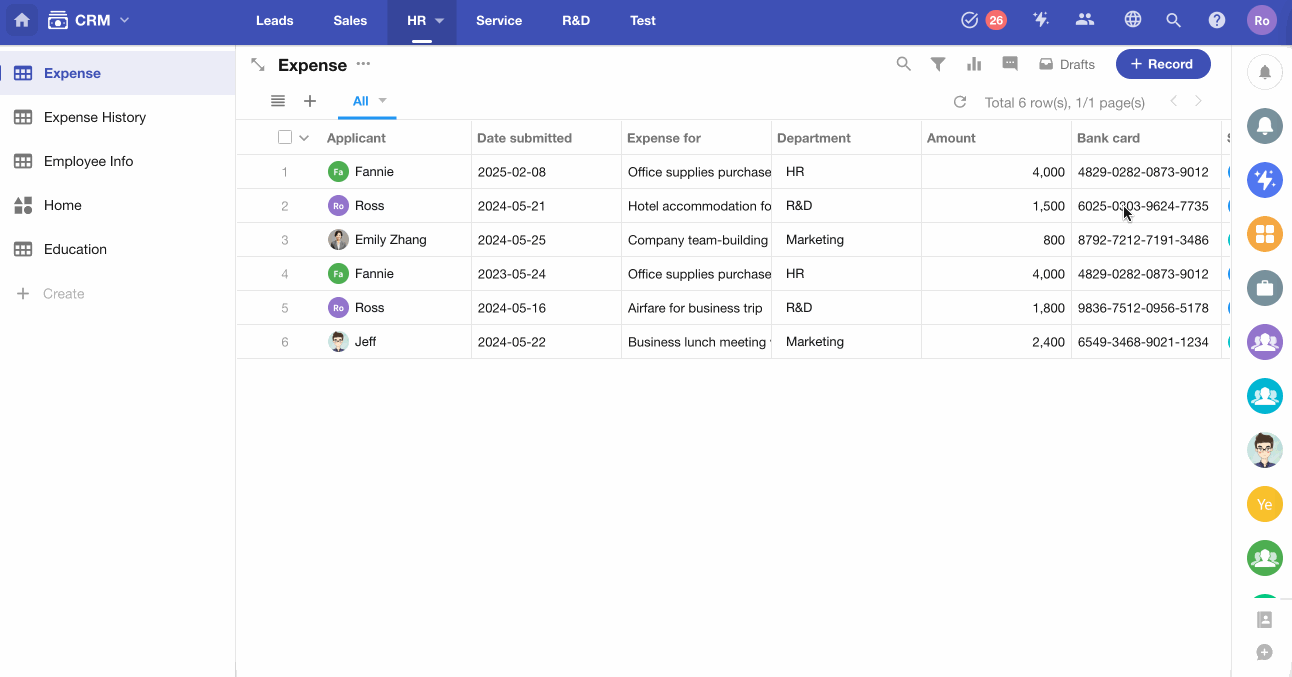When an employee submits a new expense reimbursement request, the bank card field should automatically populate with the information used in their last reimbursement.