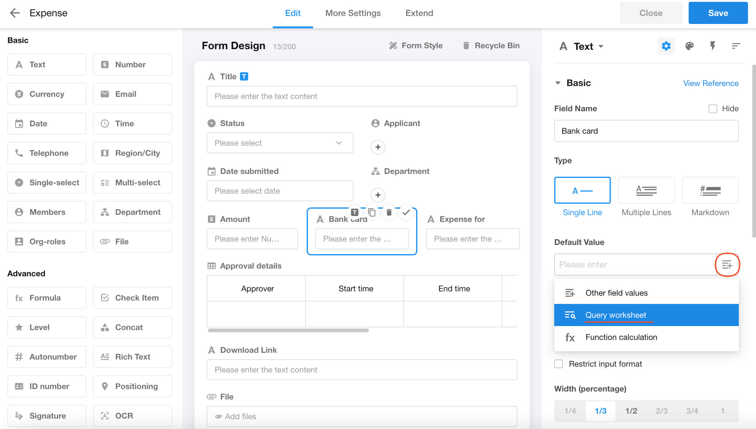 1) Use a Worksheet Query to Set a Dynamic Default Value for the "Bank Card" Field