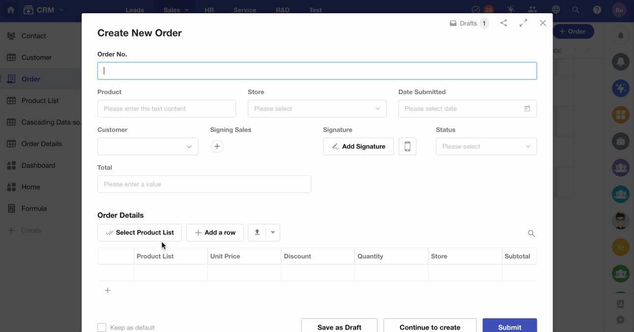 When adding order details: