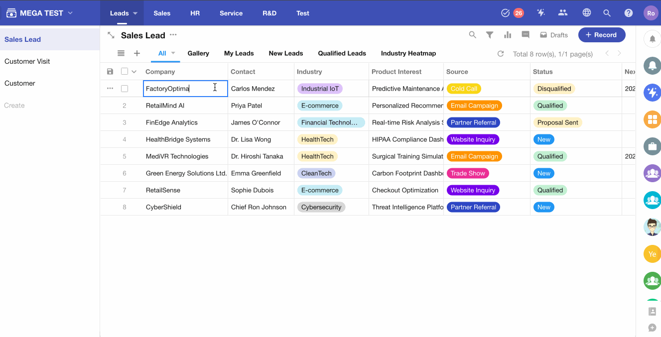 In Kanban View/Org View/Gallery View: Quick editing of field content within record cards.