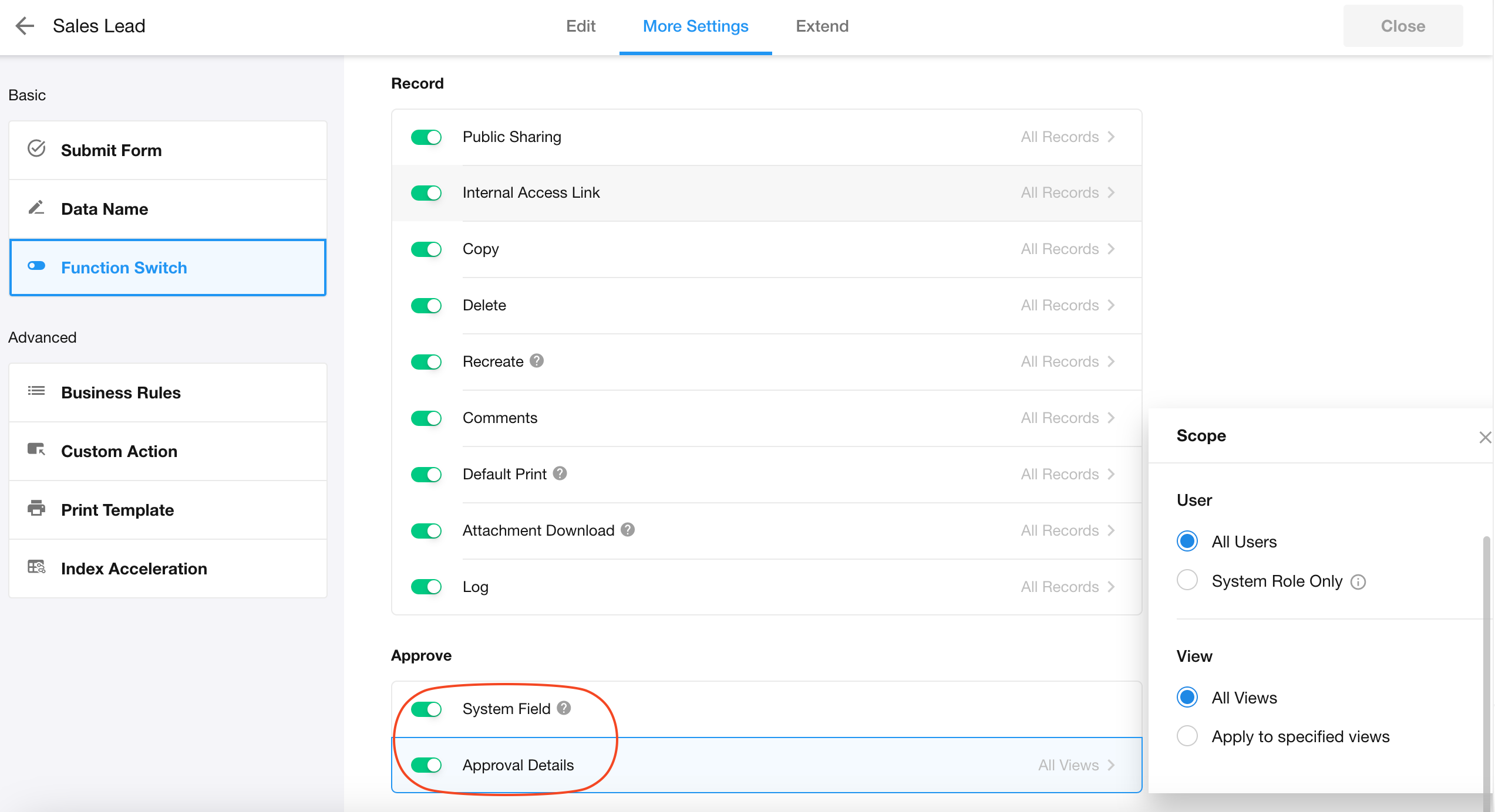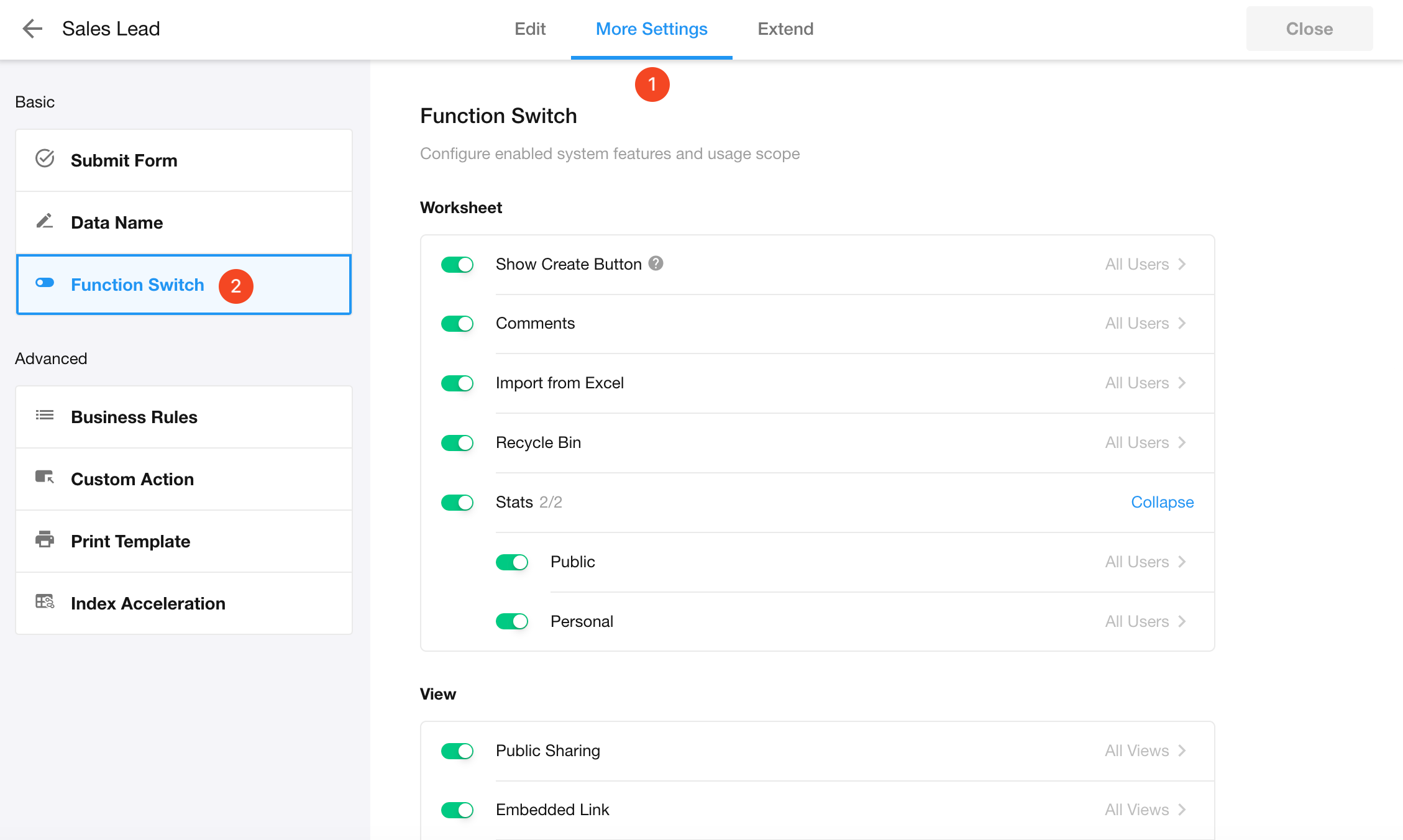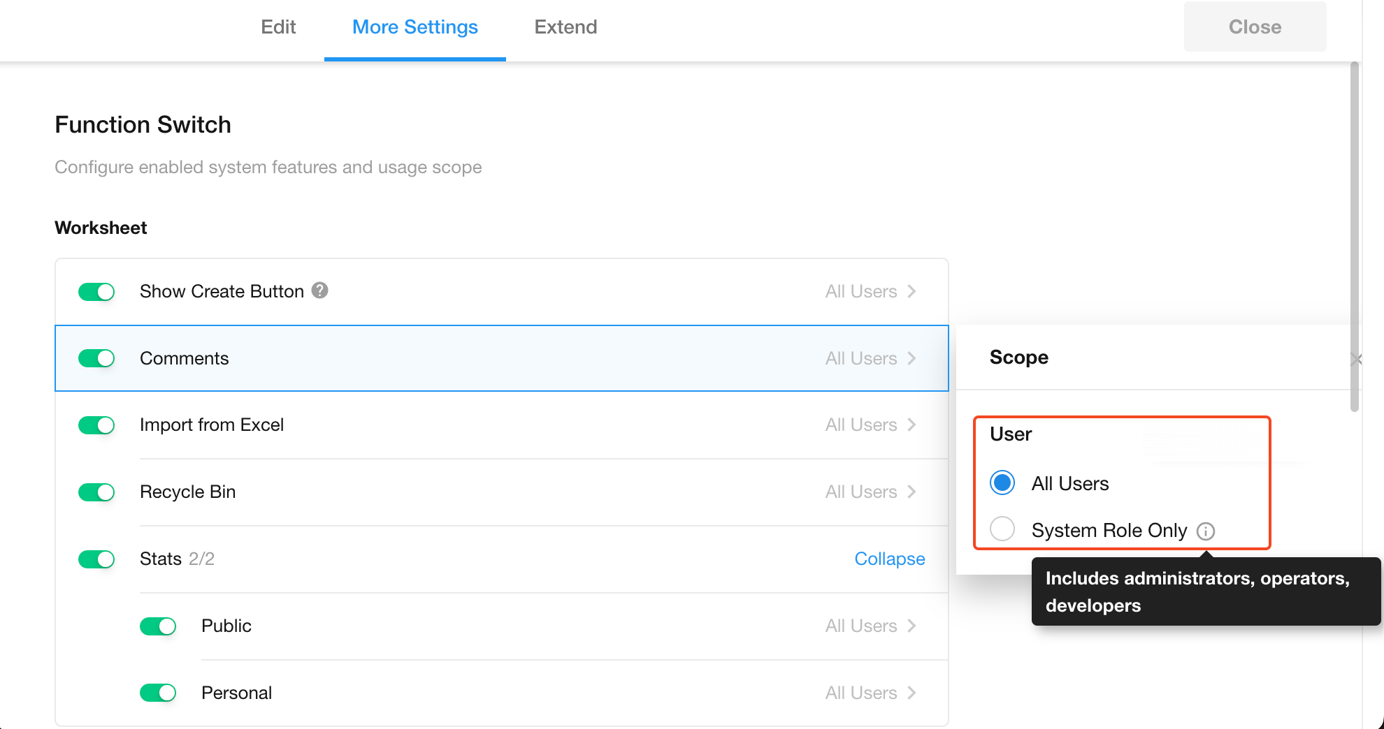 Certain features may need to be restricted to specific user groups or limited to particular views. The Function Switch ensures role-based access control, maintaining data accuracy and compliance while improving operational efficiency.