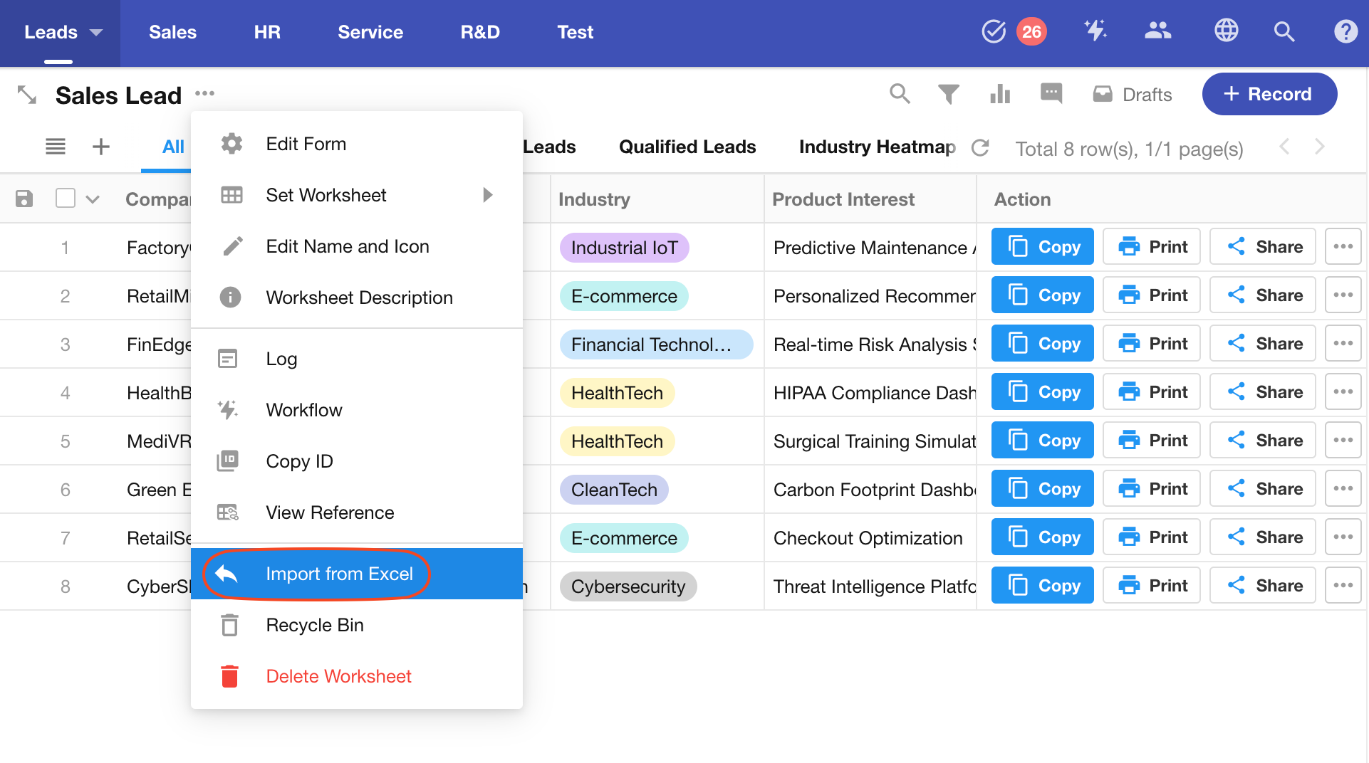 Only Table View supports selecting multiple records for batch operations, which include: Edi, Copy, Delete, Export, Print QR Codes, or Execute Custom Actions.