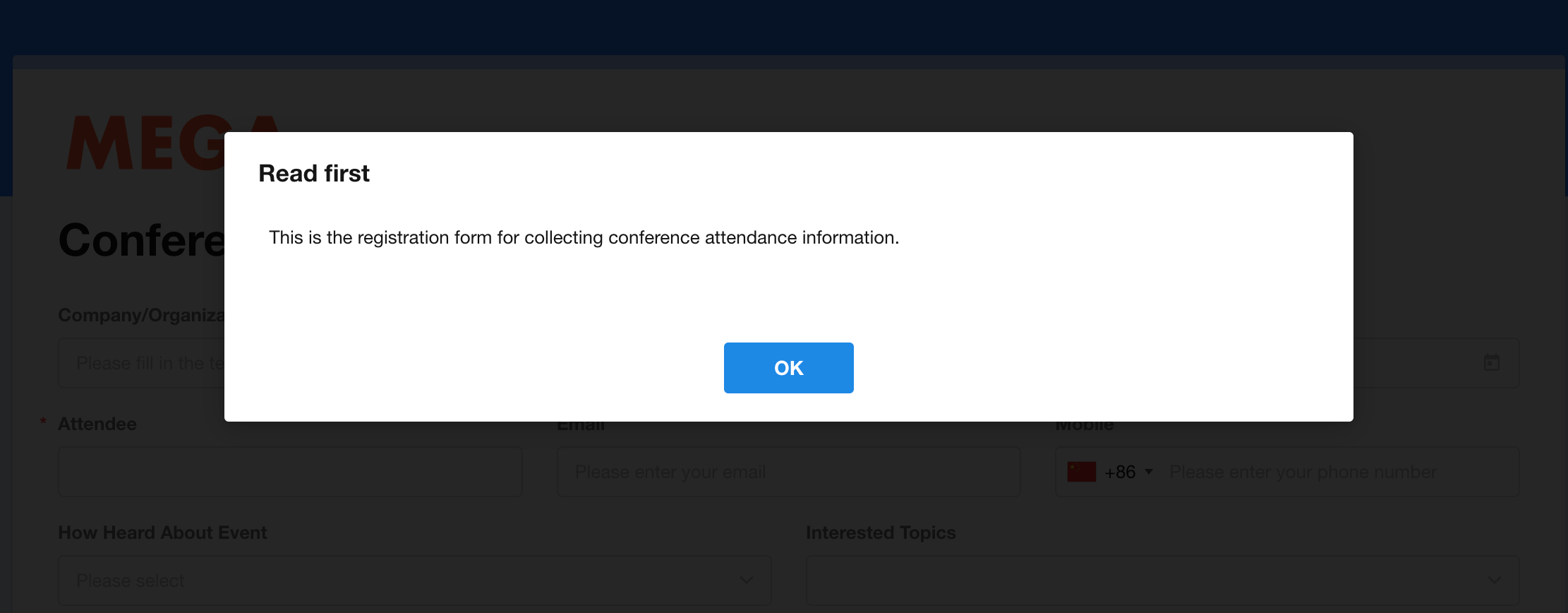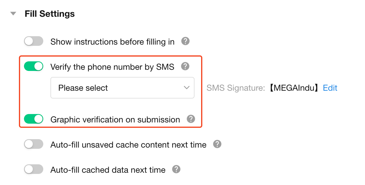 If a mobile number is required in the form, an SMS verification code will be sent to verify the phone number. Data can only be submitted after correct code entry.