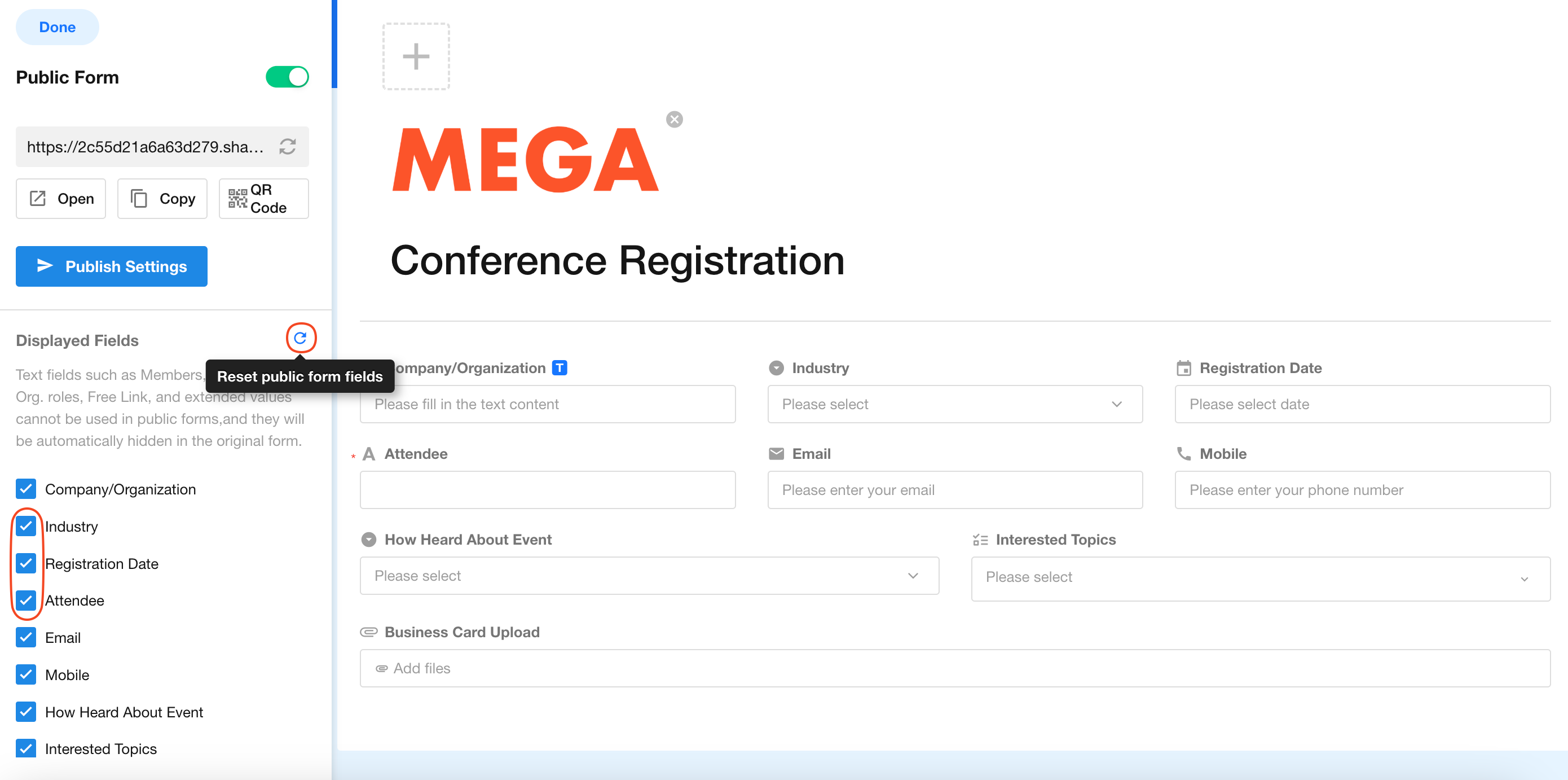 Create a conference registration worksheet, then share the data submission link or QR code publicly to allow non-members to submit data.