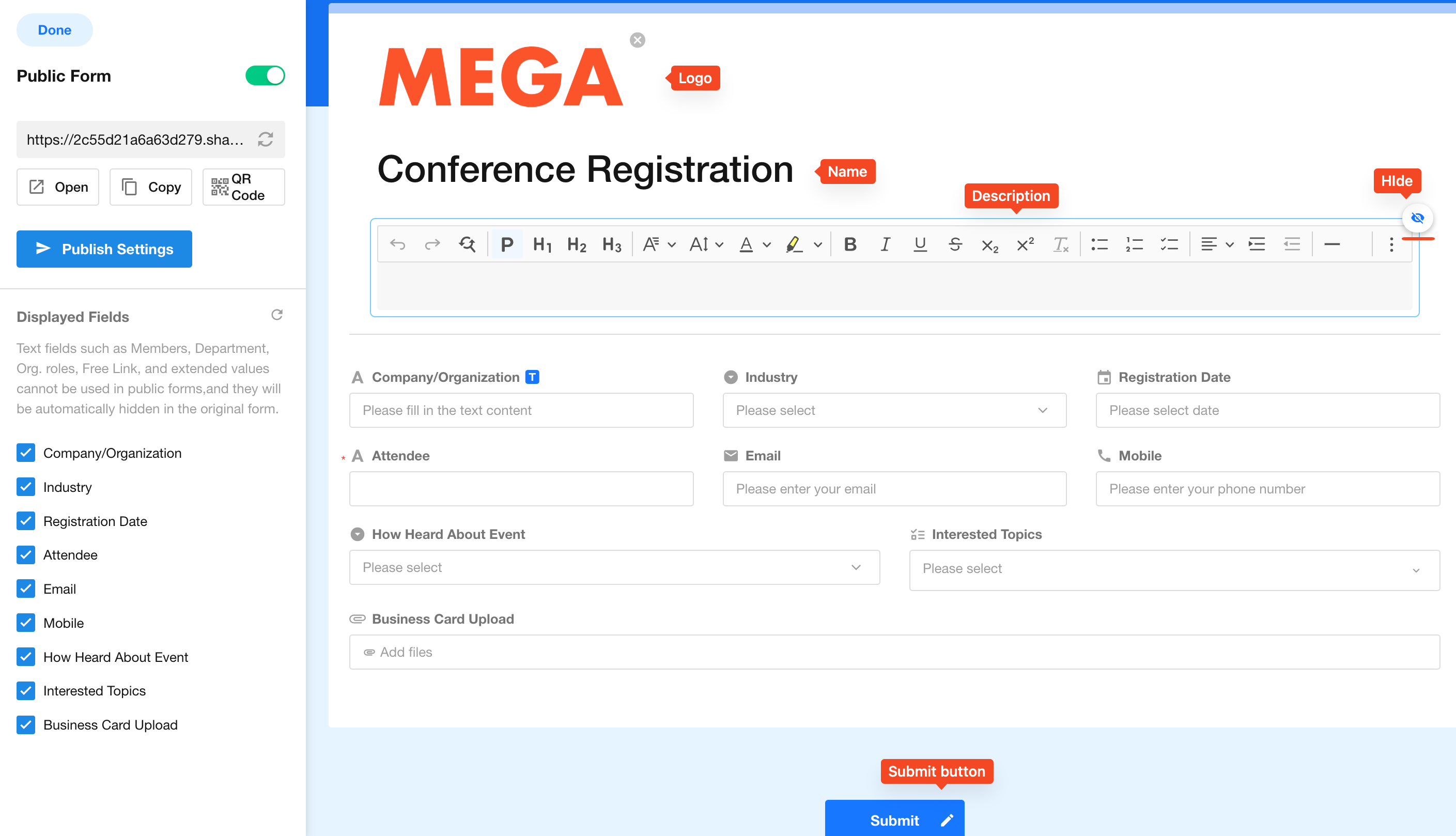 2. Set public form name/description