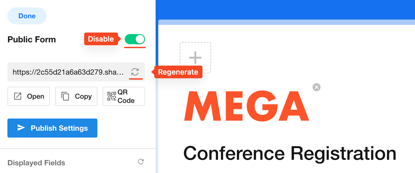 When the public form is disabled, users will no longer be able to submit data through the link or QR code.