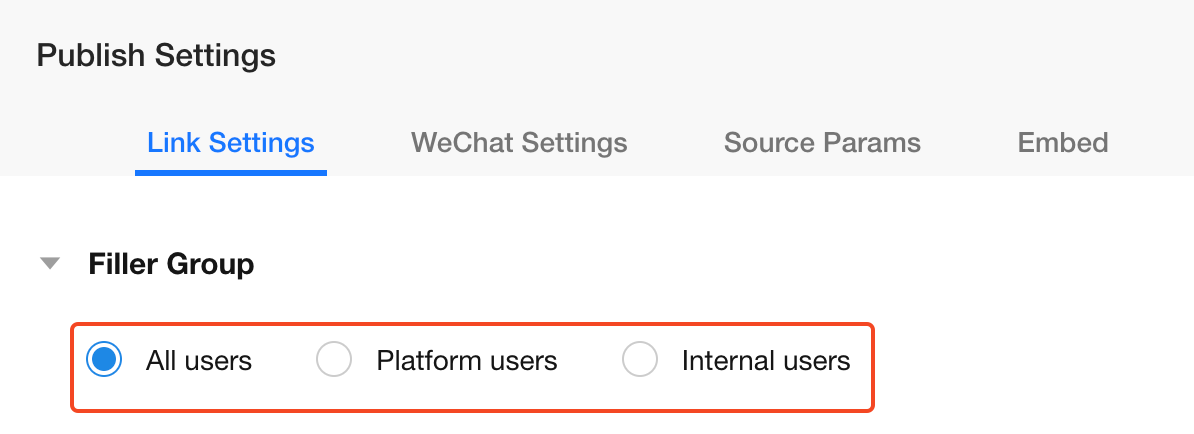If "Platform Users" or "Internal Users" is selected, users will need to log in to submit data when opening the link.