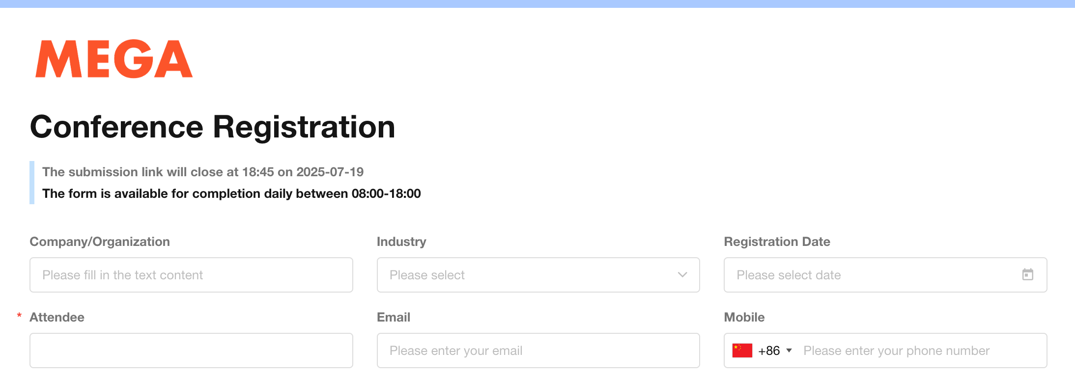 Submissions are not allowed before or after this period, and the public form page will display corresponding notifications.