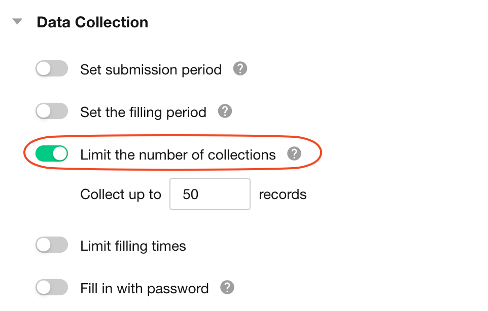 Set a collection quantity limit - data collection will stop once the collected data reaches this limit.