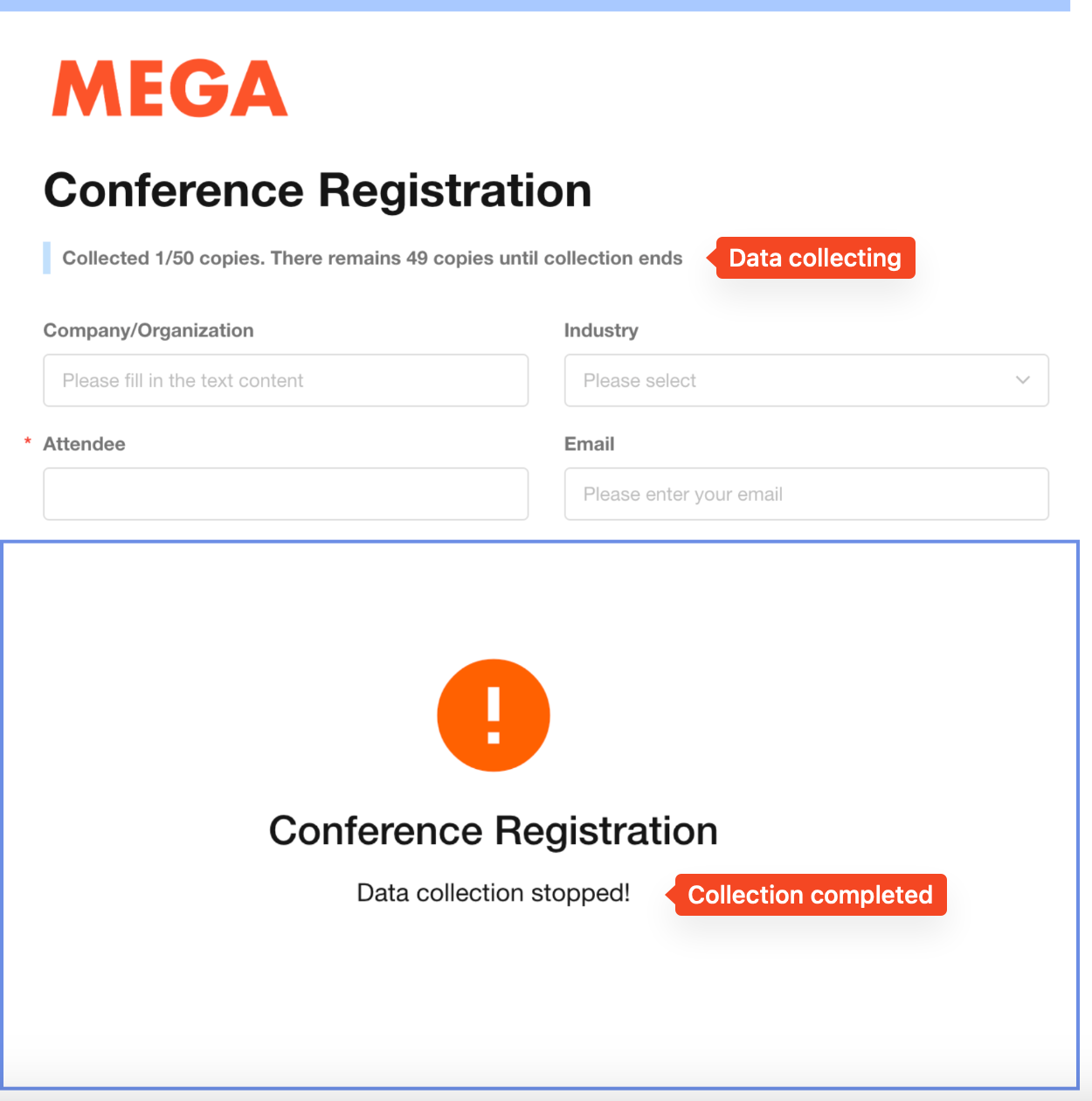 Publicly collect registration information, surveys, and customer satisfaction feedback.