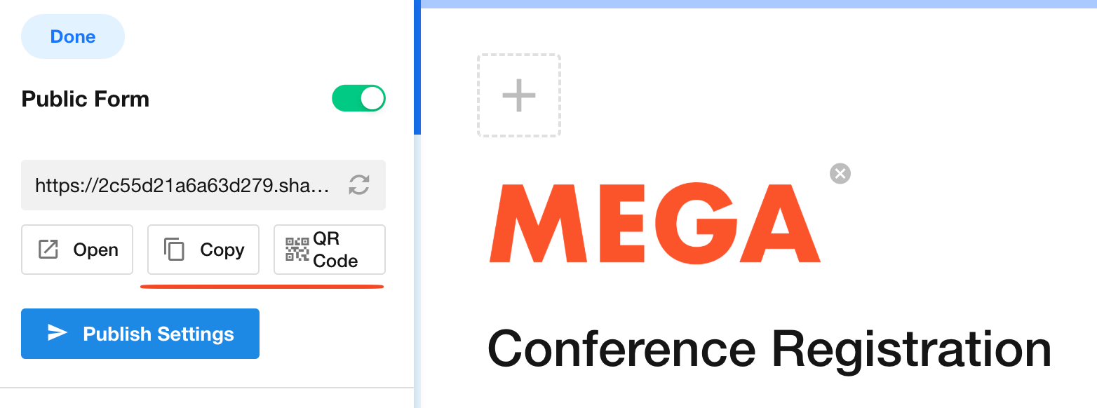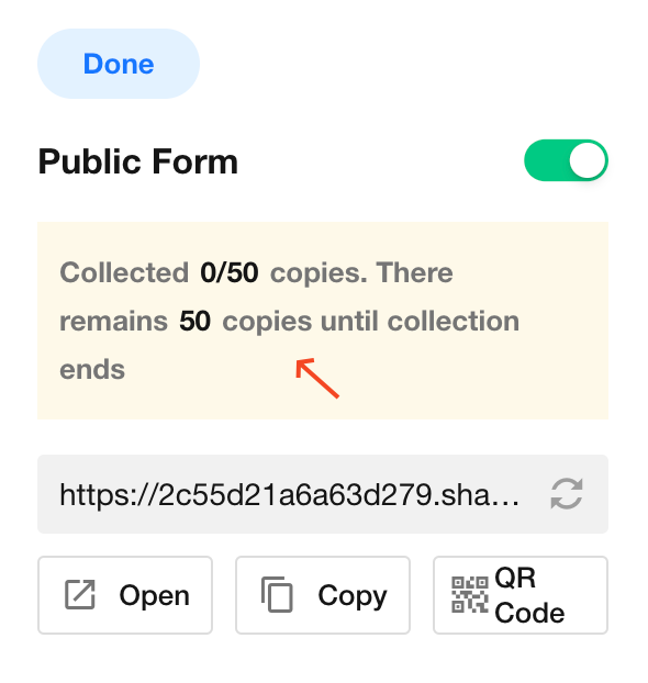 After completing the above configurations, you can share the public link and QR code with relevant users for data submission.