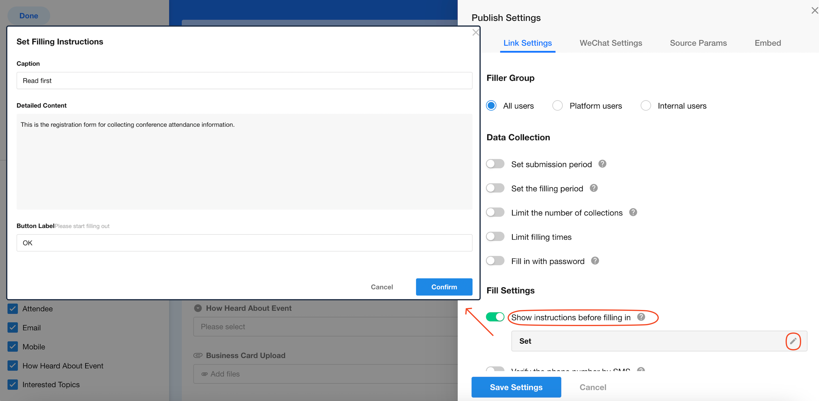 Configure instructions to be shown to users before they fill out the public form as needed.