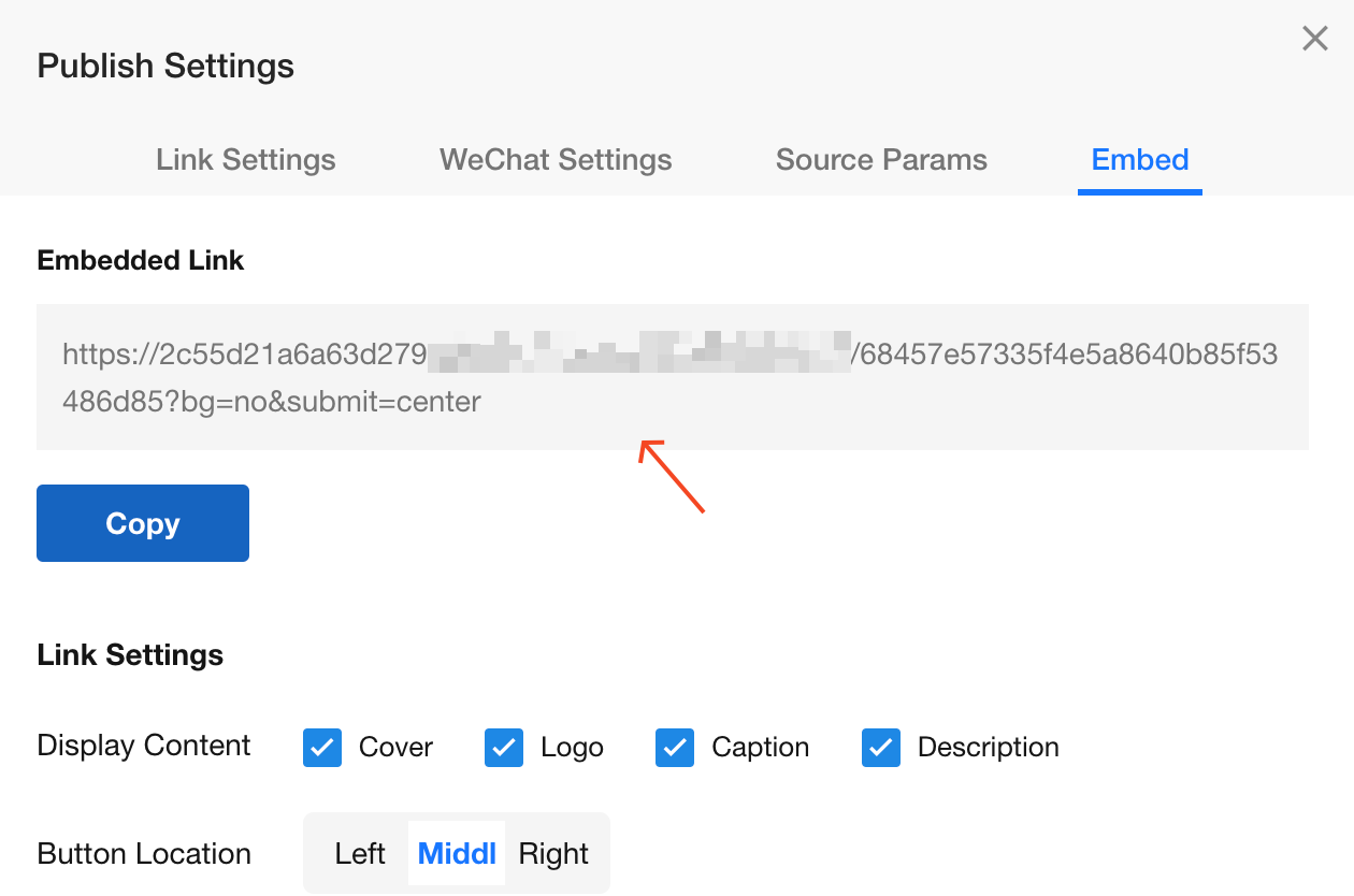 When embedding into other systems, you can configure the link to maintain page cleanliness and layout aesthetics: