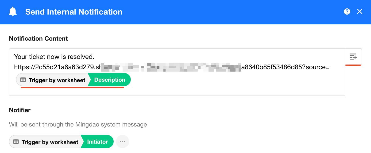 Similarly, concatenating links through workflows by selecting a dynamic field (record ID, phone number, etc.) as the parameter value can also automatically generate a traceable public link.
