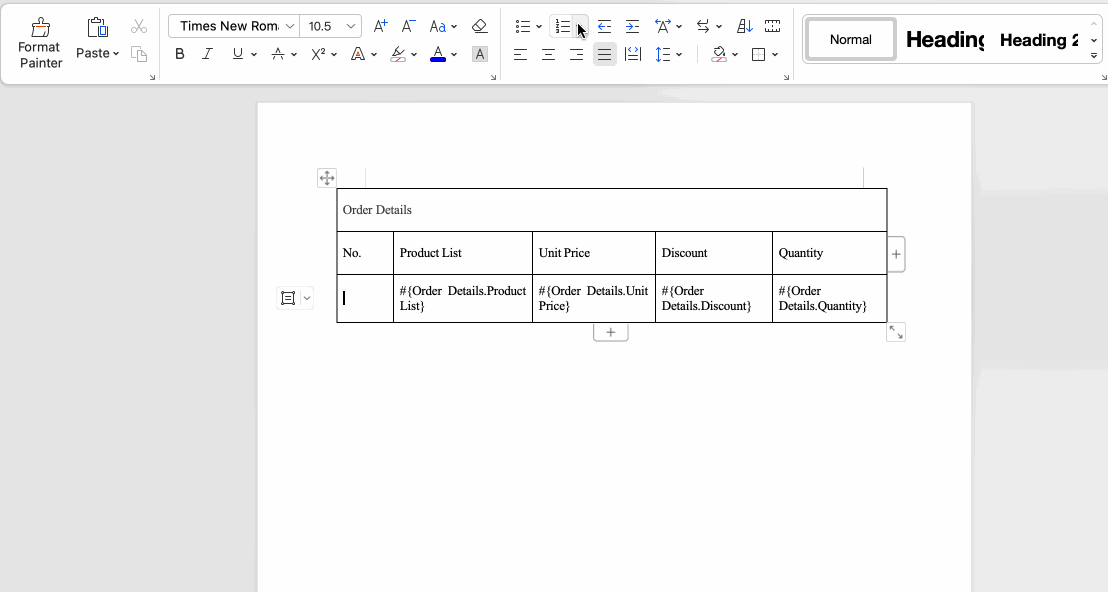 When creating a Word print template for the first time, you'll need to use field codes for each record field. Paste these codes into the Word file to auto-populate data during printing.