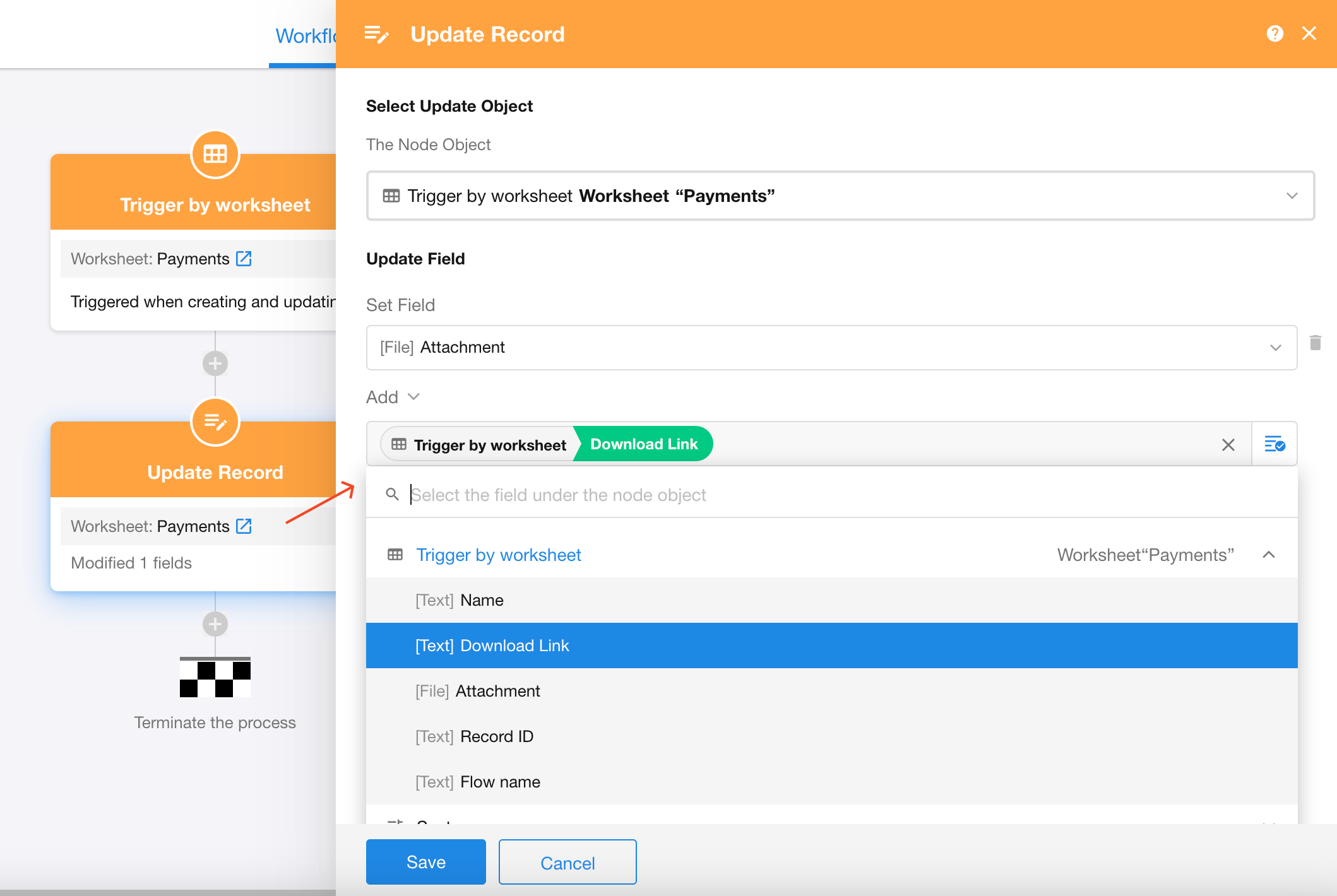 2. Add Files (Download Link) to the Attachment Field