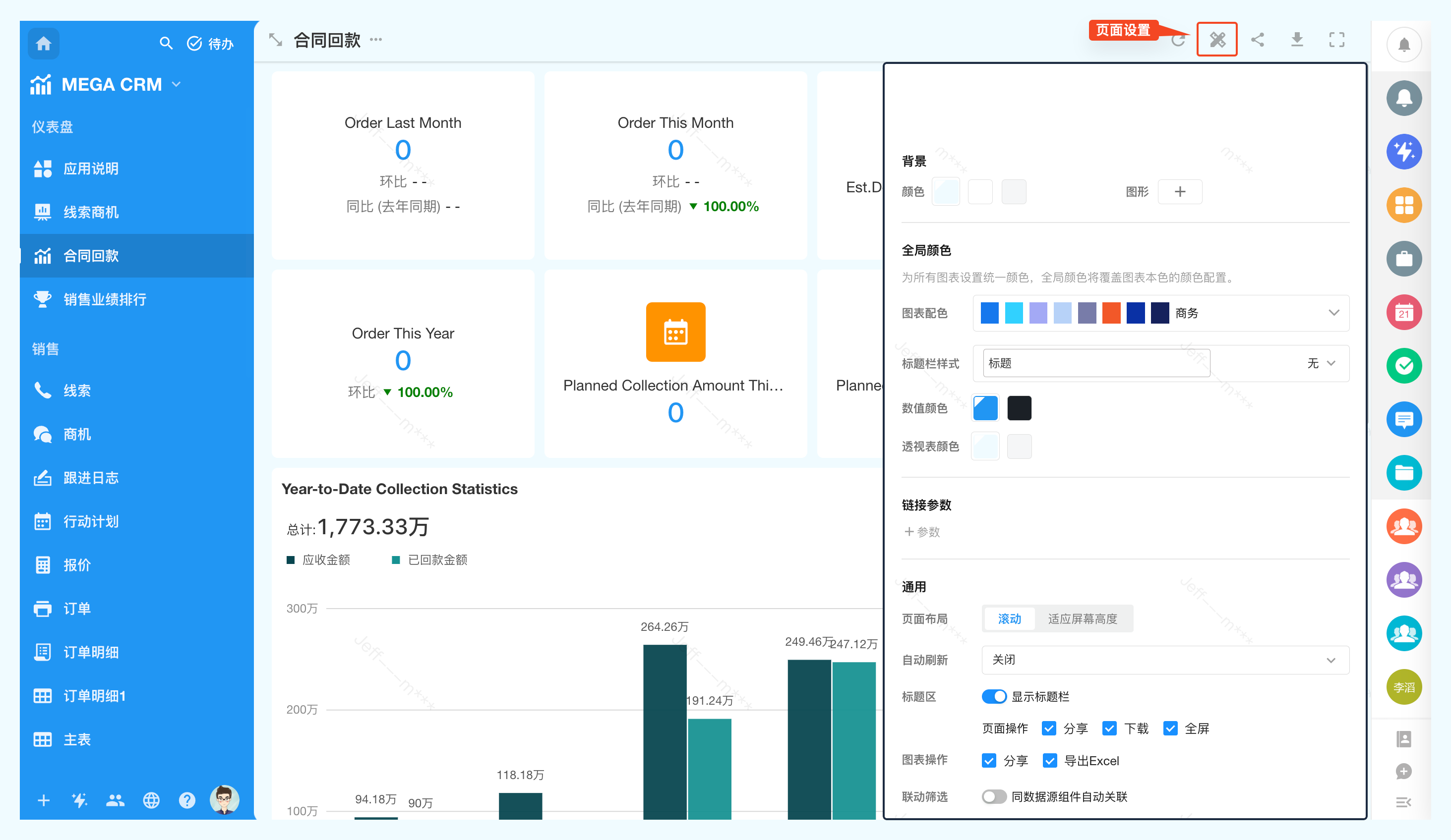 在自定义页面中,应用管理员可以配置在此页面中显示的内容,常用于仪表盘,显示当前应用下所有数据的统计图,方便查看,分析和决策。