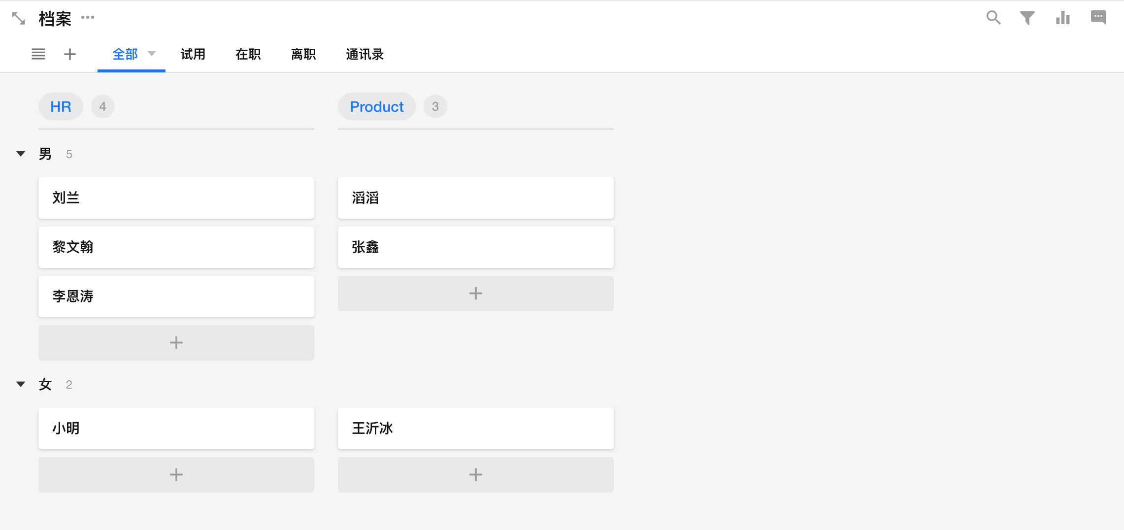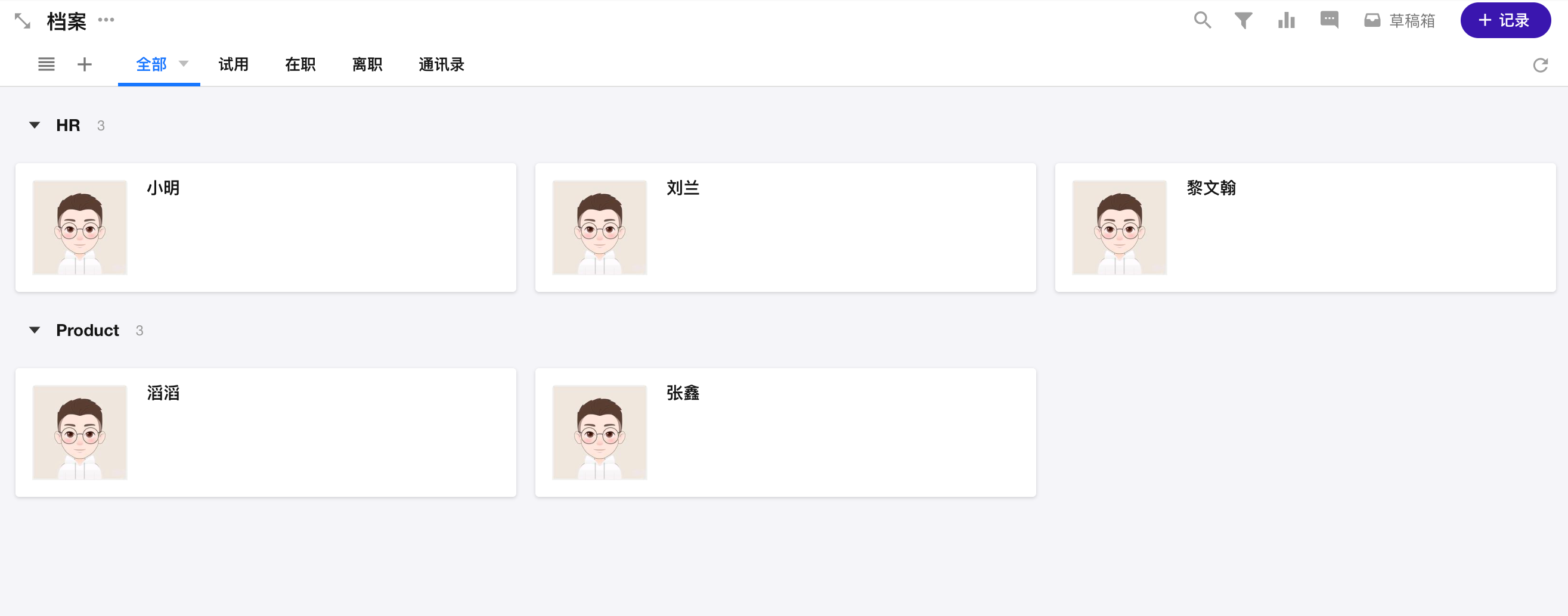 例如,在“在职”视图下查看员工档案时,离职时间这个字段是空的,也没必要显示,因此在这个视图下是可以隐藏的,离职时间在“离职”视图下显示即可。