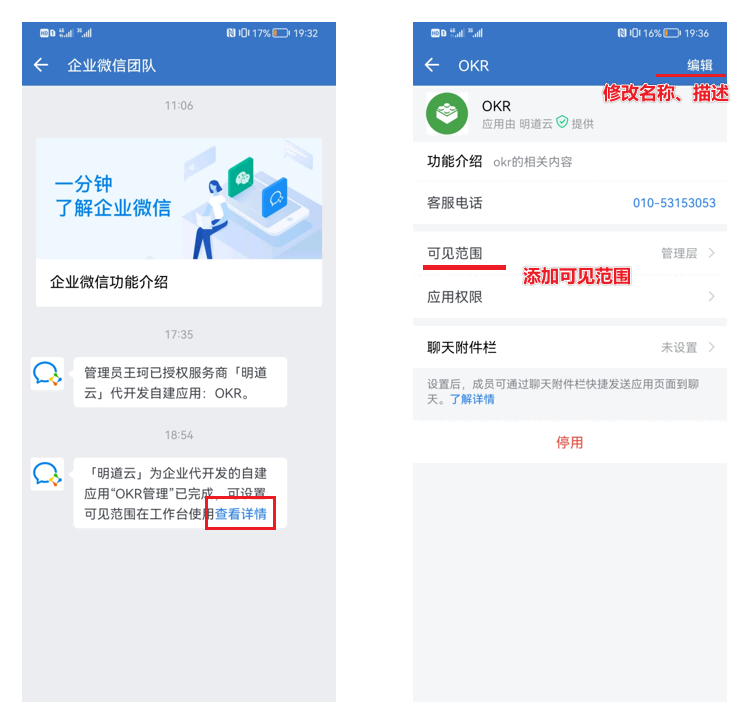 其中第4、第5步可以在企业微信APP完成,操作路径如下: