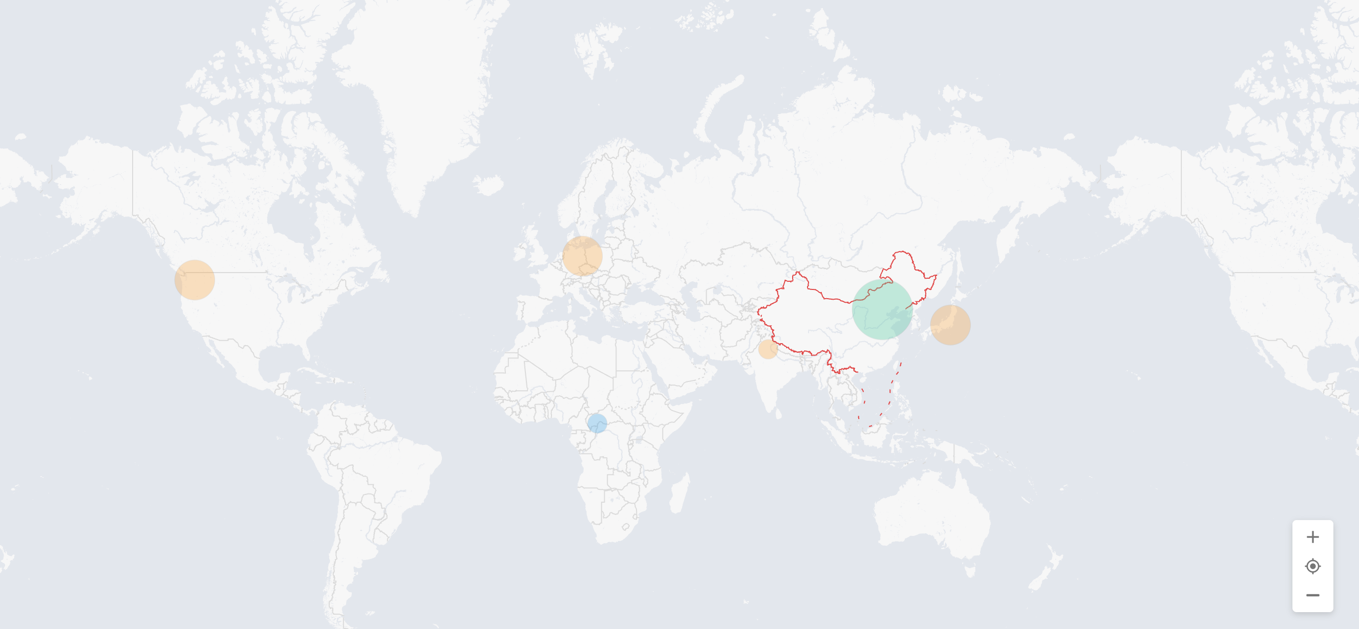 地理气泡图用于在全球或区域地图上直观展示数据分布。