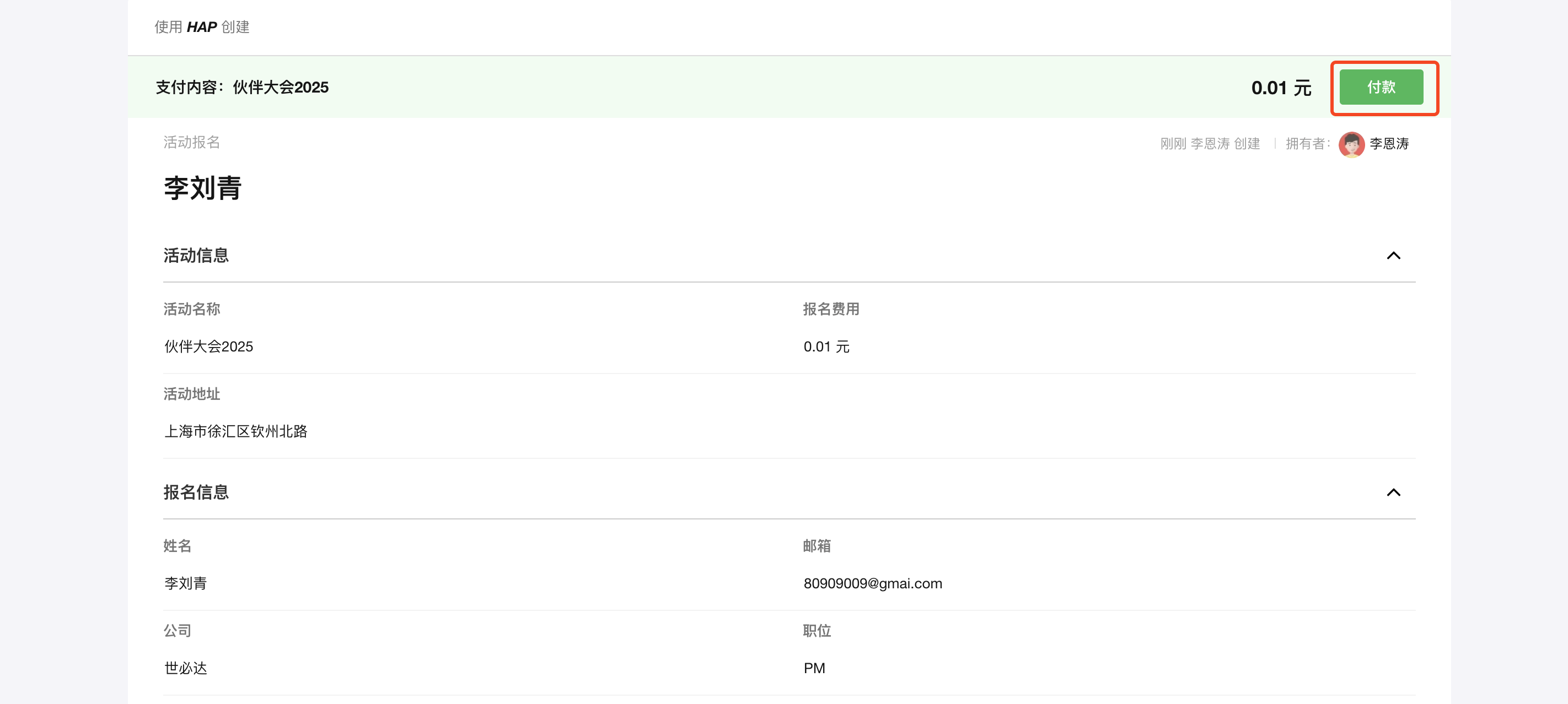 注意:仅工作表的支付设置中开启了“工作表记录”支付才可获取支付链接。